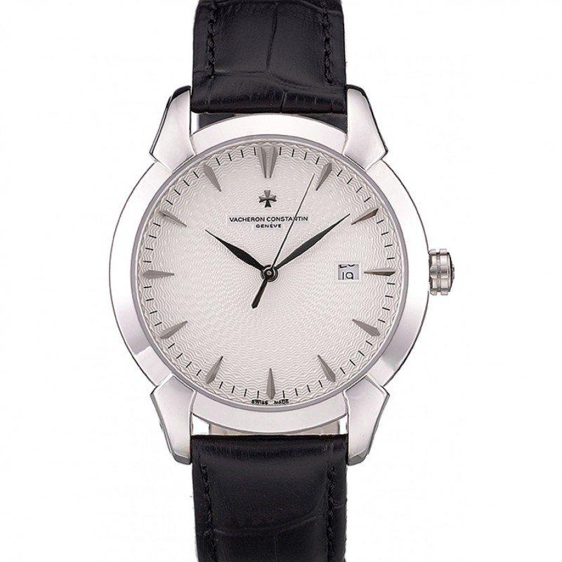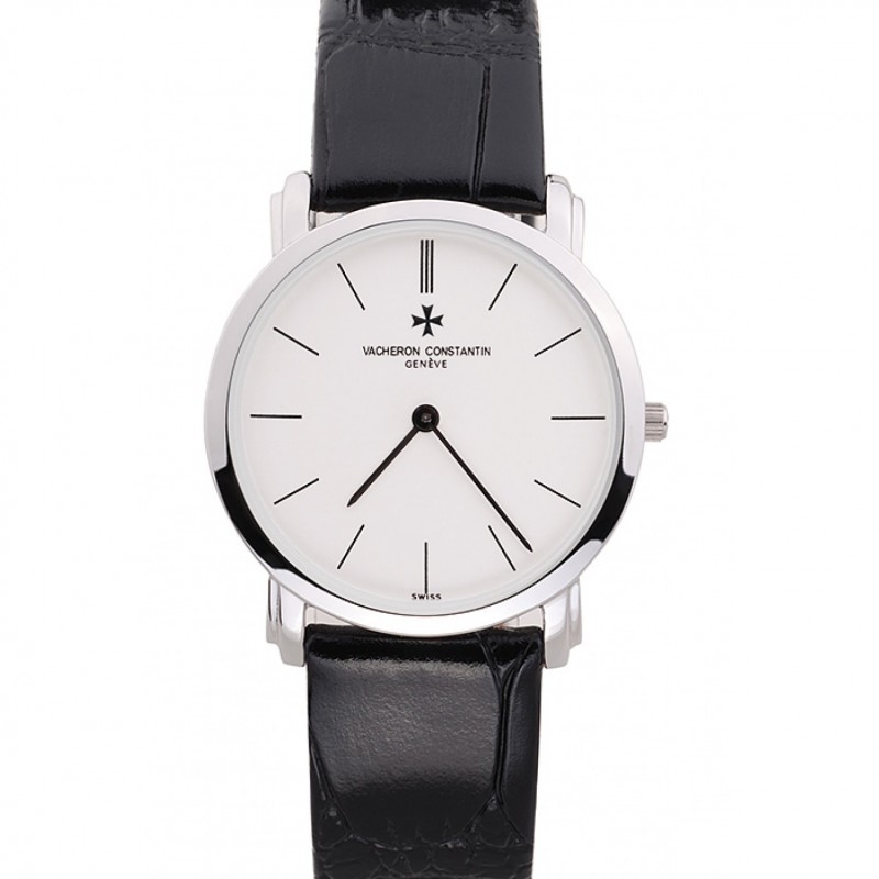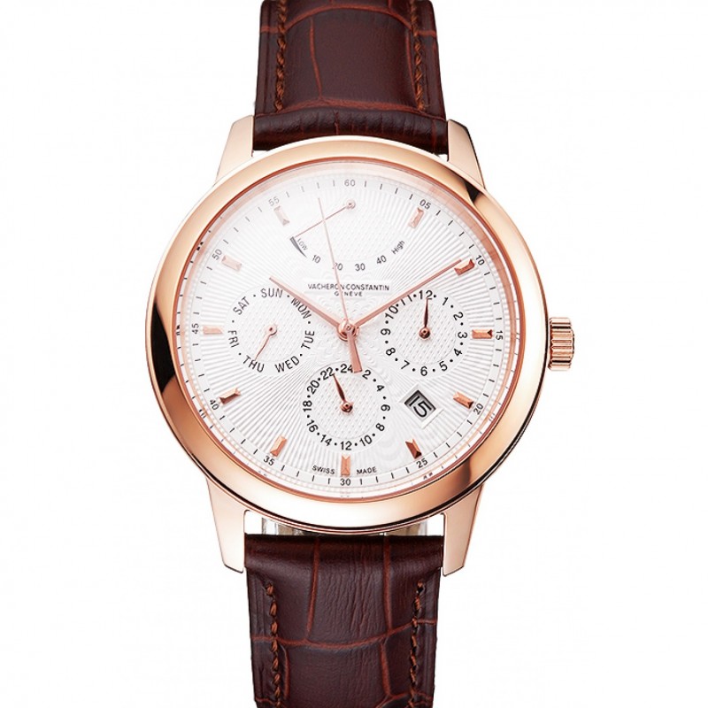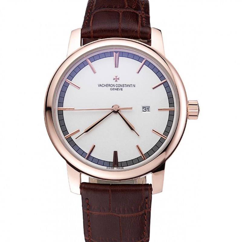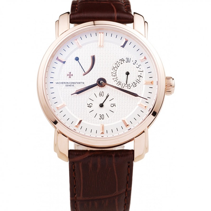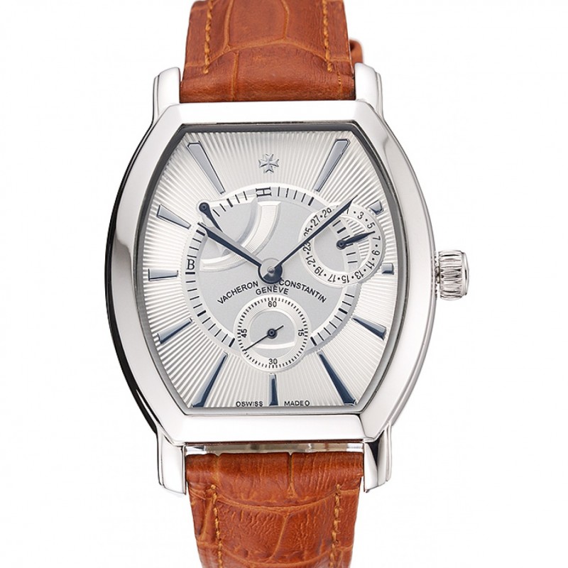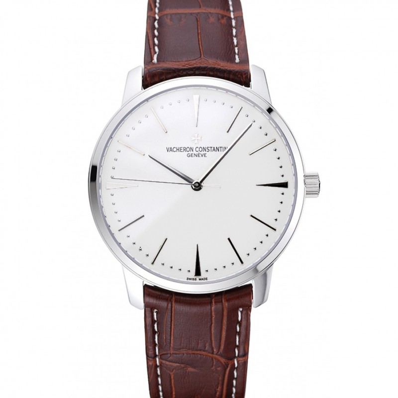 Vacheron Constantin Malte quadrante bianco Bracciale in pelle Cassa in acciaio Brown