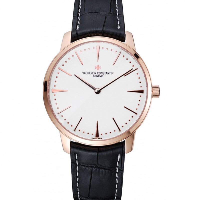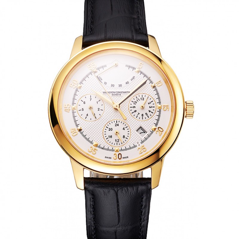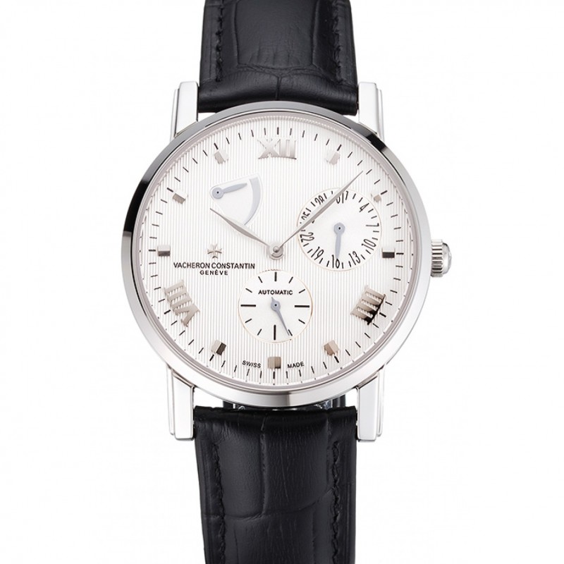 Svizzero Vacheron Constantin Traditionnelle Power Reserve quadrante bianco cassa in oro nero Cinturino in pelle