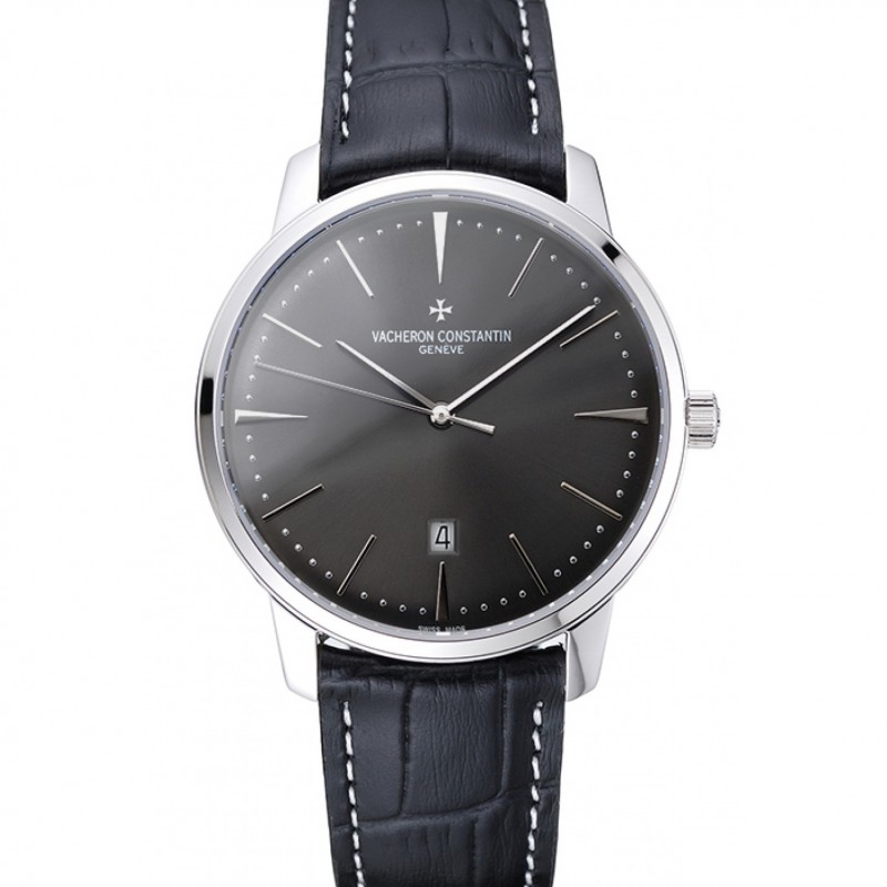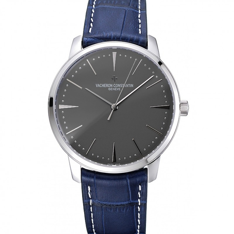 Svizzero Vacheron Constantin Patrimony quadrante grigio il braccialetto di cuoio d’argento nero della cassa 1454160