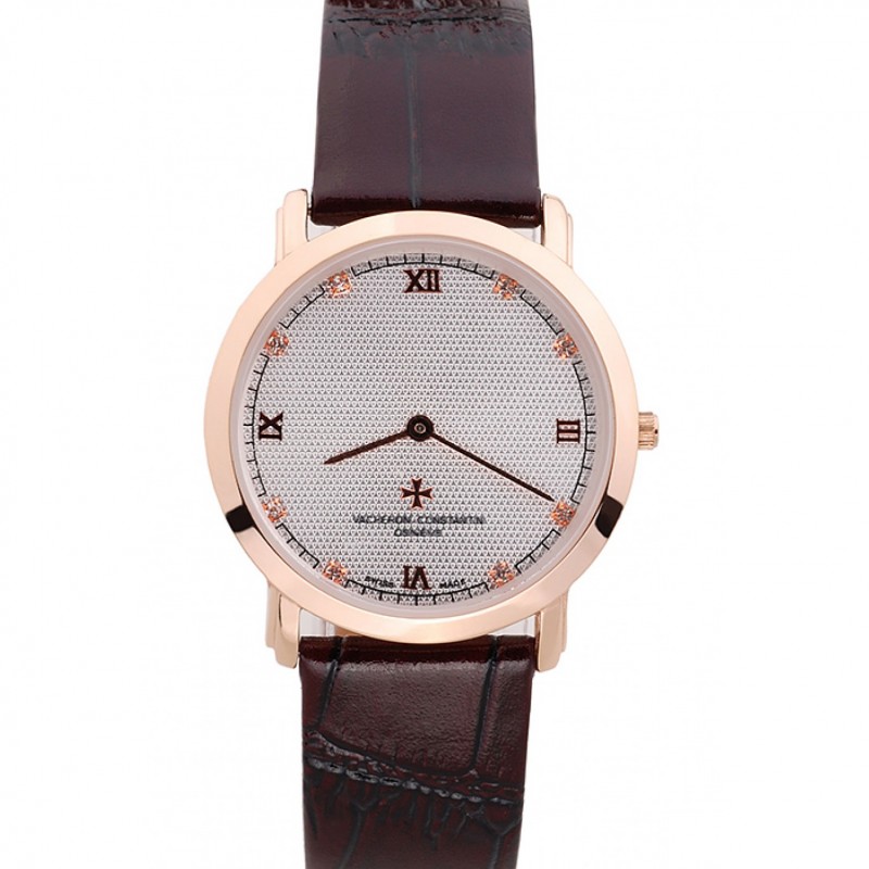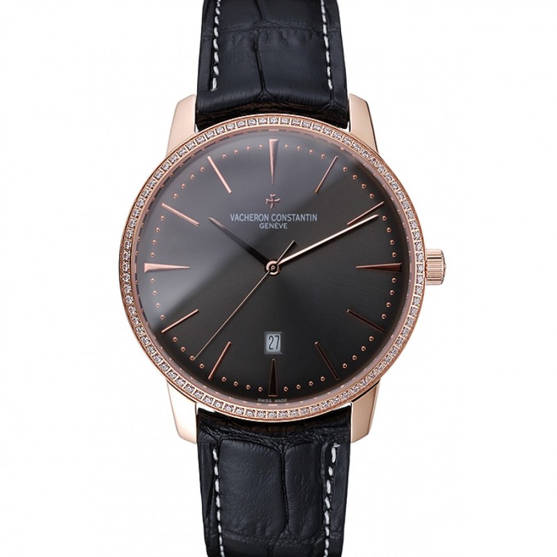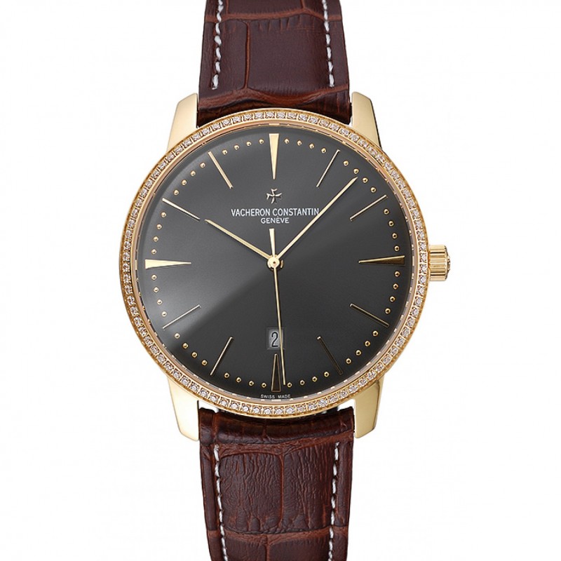 Svizzero Vacheron Constantin Patrimony Grigio quadrante in oro diamanti Bracciale Custodia in pelle marrone 1.454.182
