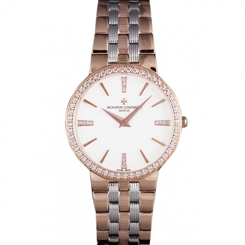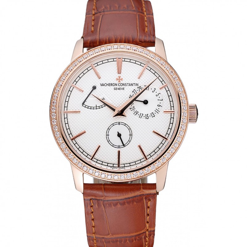 Vacheron Constantin Patrimony Power Reserve quadrante bianco in pelle oro bracciale della cassa del diamante Brown 1454268