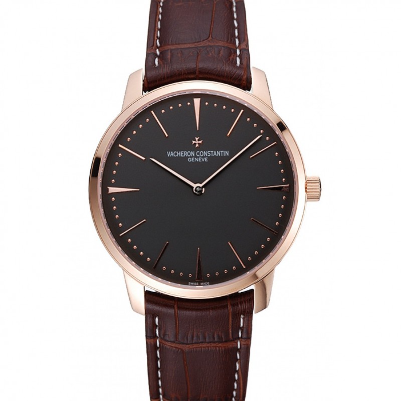Svizzero Vacheron Constantin Patrimony quadrante grigio il braccialetto di cuoio cassa in oro rosa Brown 1454166