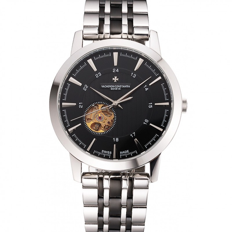 Vacheron Constantin Tourbillon quadrante nero cassa di acciaio inossidabile di due toni nero Bracciale in acciaio