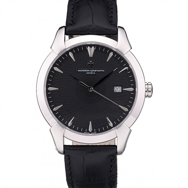 Svizzero Vacheron Constantin Traditionnelle quadrante nero Bracciale in pelle Cassa in acciaio nero