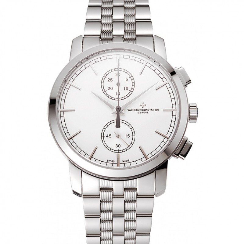 Svizzero Vacheron Constantin Patrimony Traditionnelle Cronografo quadrante bianco Cassa e bracciale in acciaio 1453755