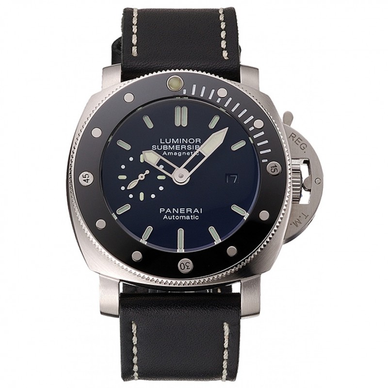 Panerai Luminor sommergibile quadrante nero Cassa in acciaio nero Lunetta Nero cinturino in pelle