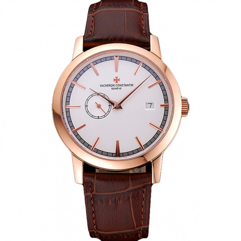 Svizzero Vacheron Constantin Patrimony Contemporaine cassa in oro rosa quadrante bianco bracciale in pelle marrone 622.680
