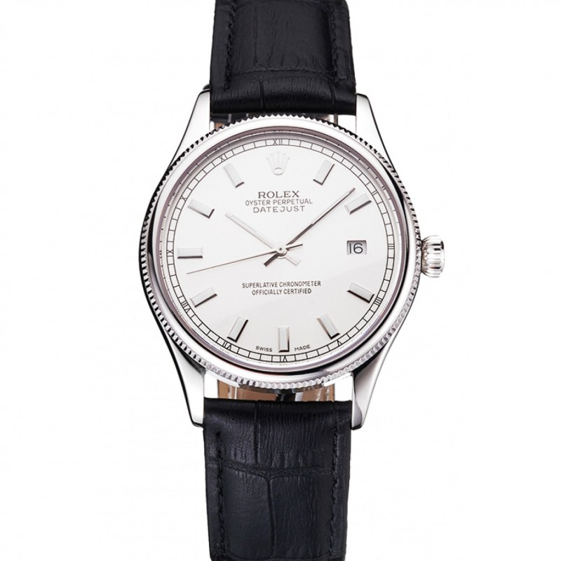 Rolex Datejust quadrante bianco Cassa in acciaio nero cinturino in pelle