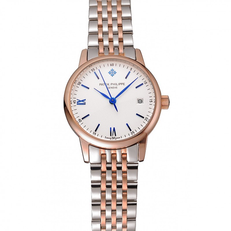 Patek Philippe Calatrava Donna Bianca quadrante blu numeri cassa in oro rosa due braccialetto Tone 1453830
