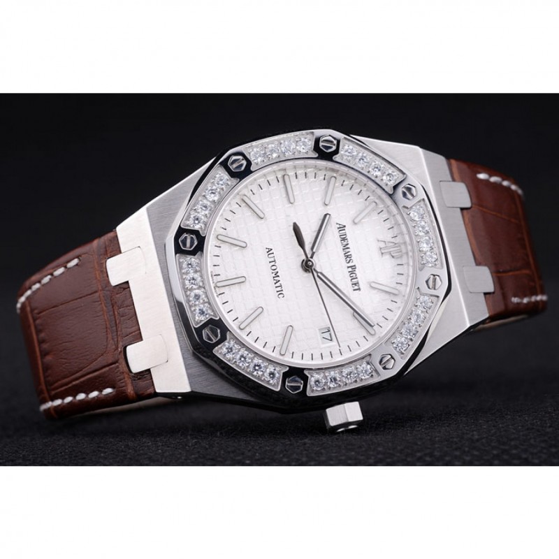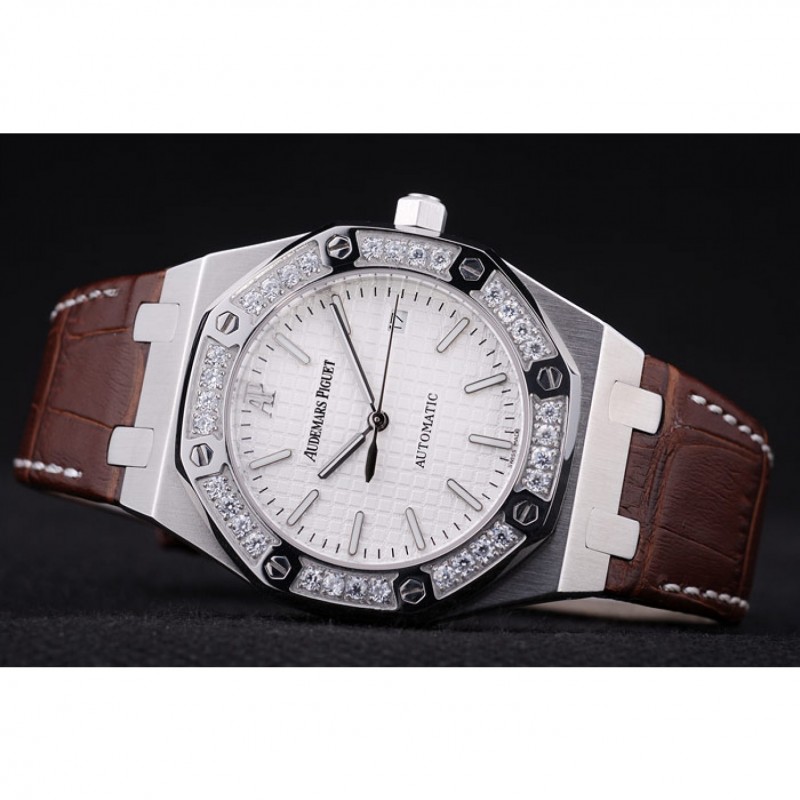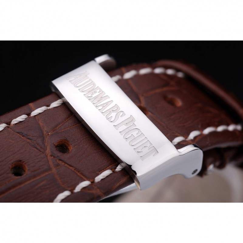 Bracciale: Brown cinturino in coccodrillo con cuciture bianche filo e calore goffrato nome Audemars Piguet e marchio e un Audemars Piguet inscritto gancio chiusura ribaltabile in acciaio inox