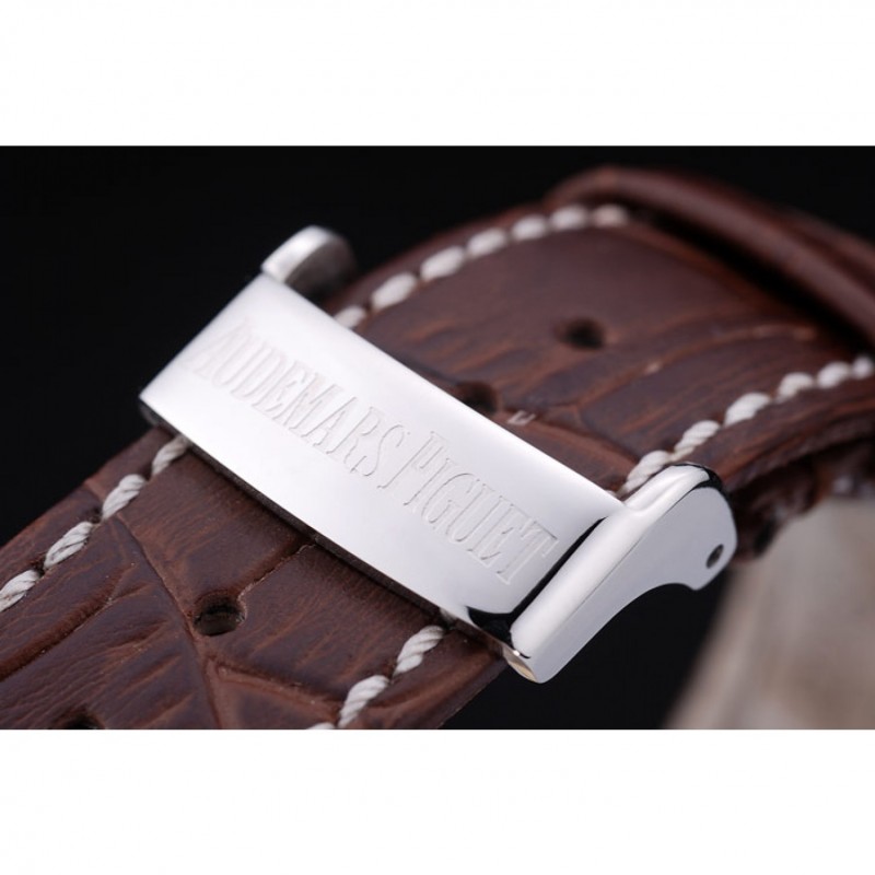 Bracciale: Brown coccodrillo cinturino in pelle con cuciture bianche filo e calore goffrato nome Audemars Piguet e marchio e un Audemars Piguet inscritto gancio chiusura ribaltabile in acciaio inox