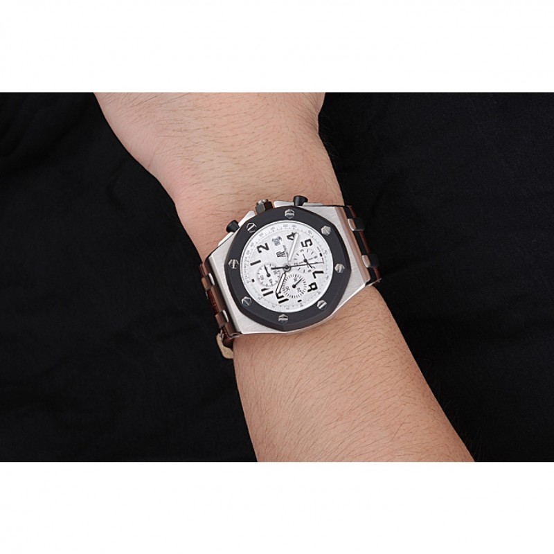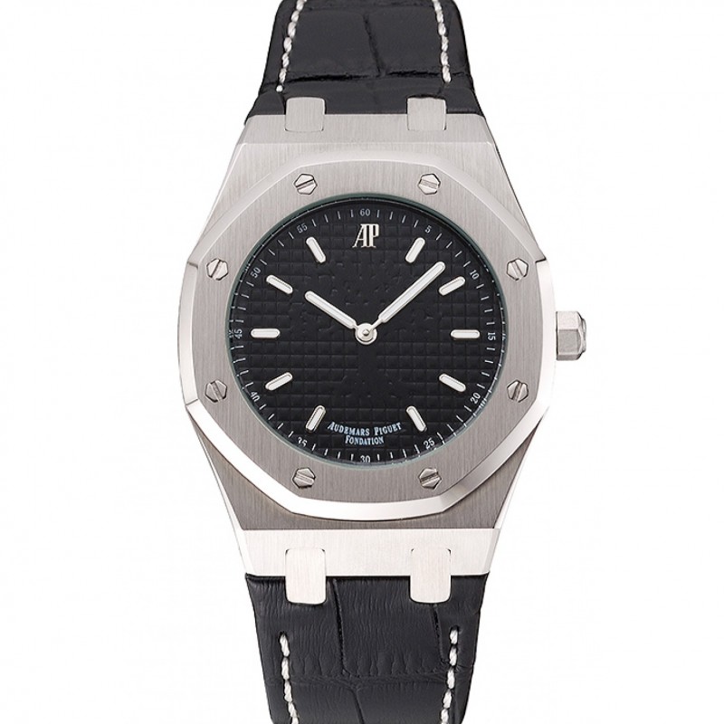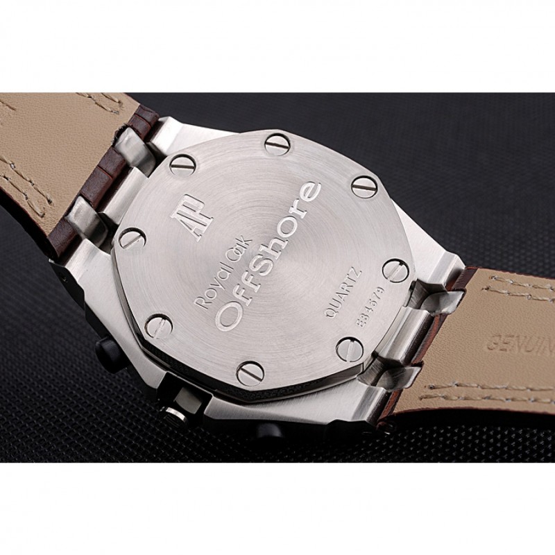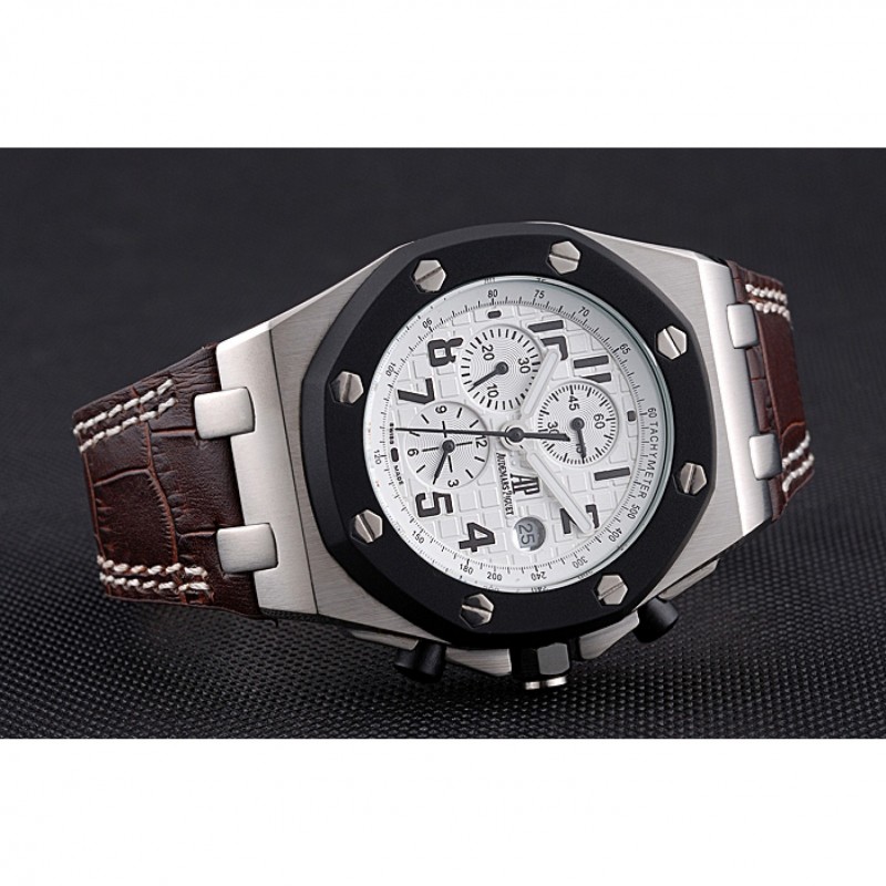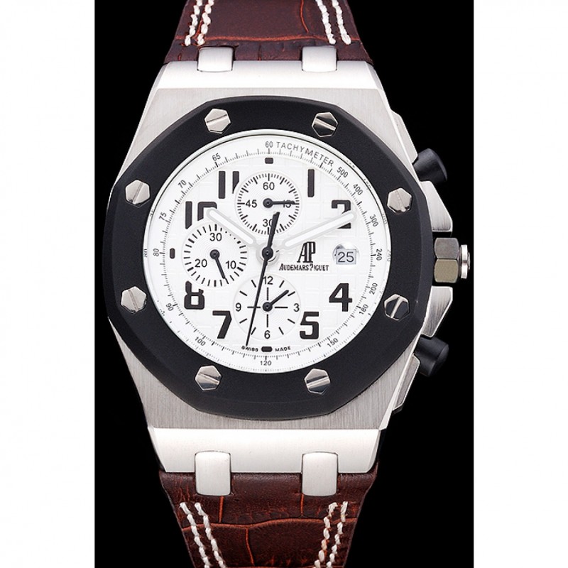 braccialetto: calore goffrato Audemars Piguet cinturino marrone in pelle di coccodrillo con doppia cucitura bianco e Audemars Piguet inciso inossidabile pieghevole in chiusura
