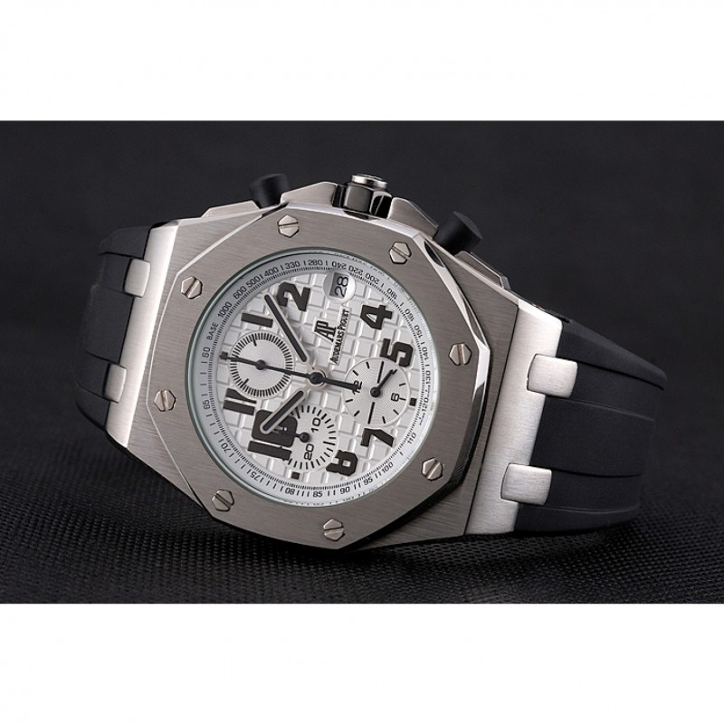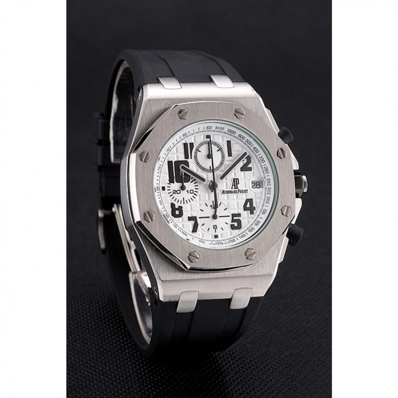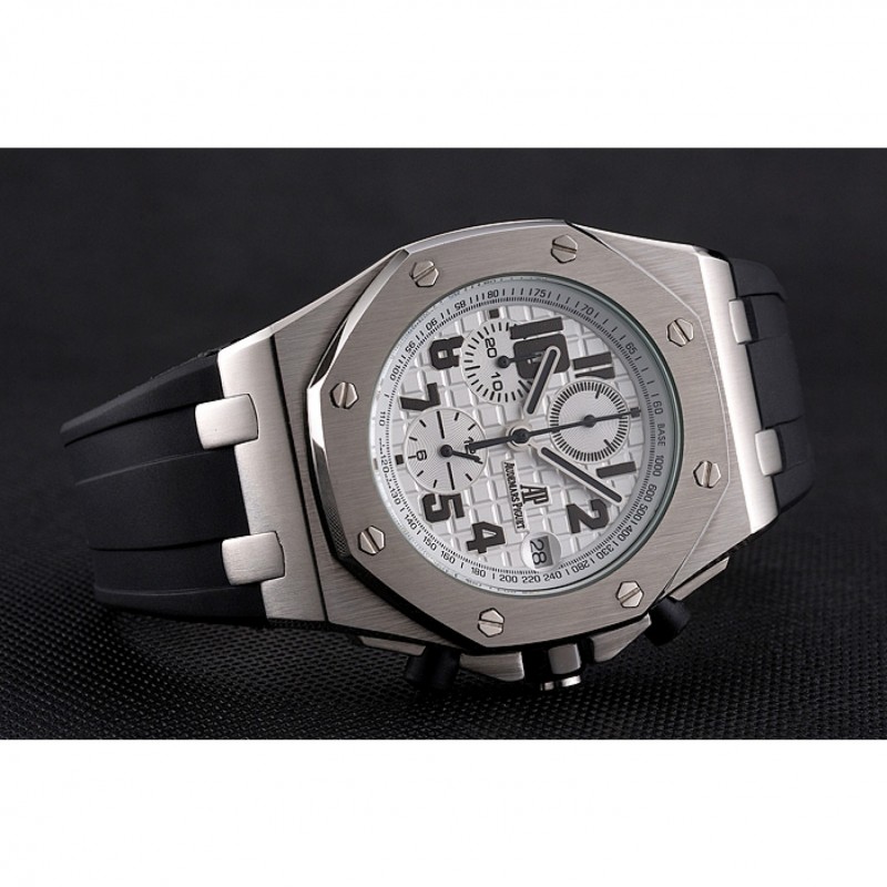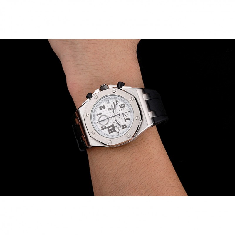 Audemars Piguet Royal Oak Offshore quadrante bianco Cassa in acciaio nero cinturino in caucciù