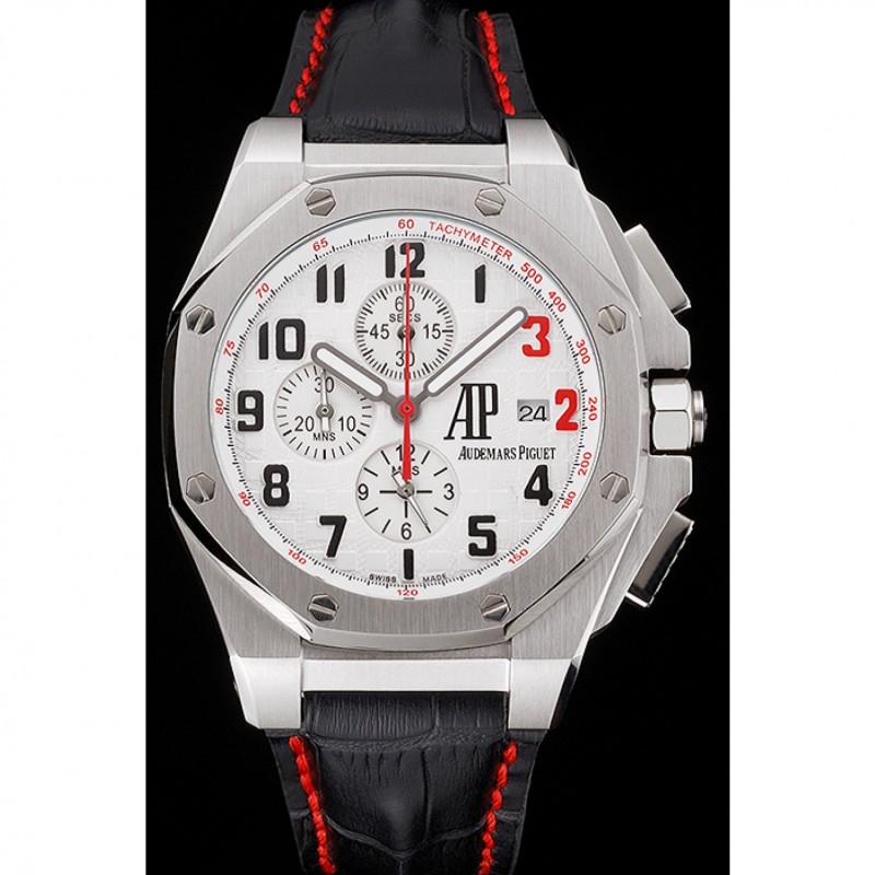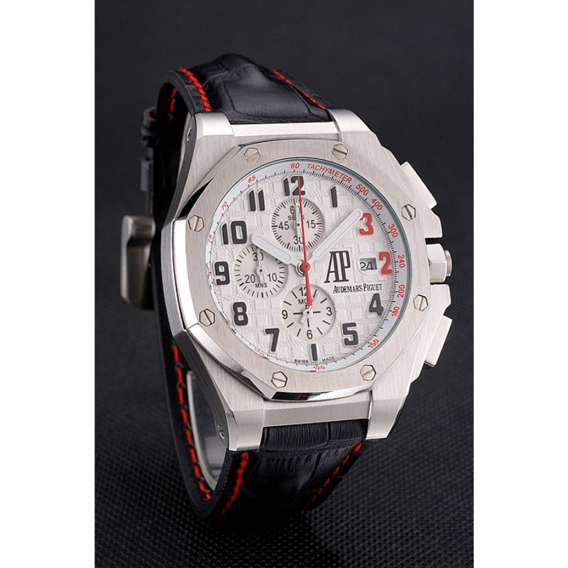 Crown: Audemars Piguet logo inciso lucido corona intaglio in acciaio inox con parete di protezione e un pulsante rettangolare corona su entrambi i lati di esso