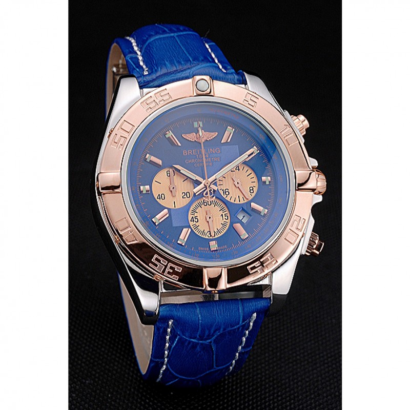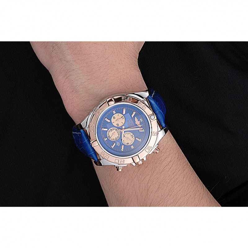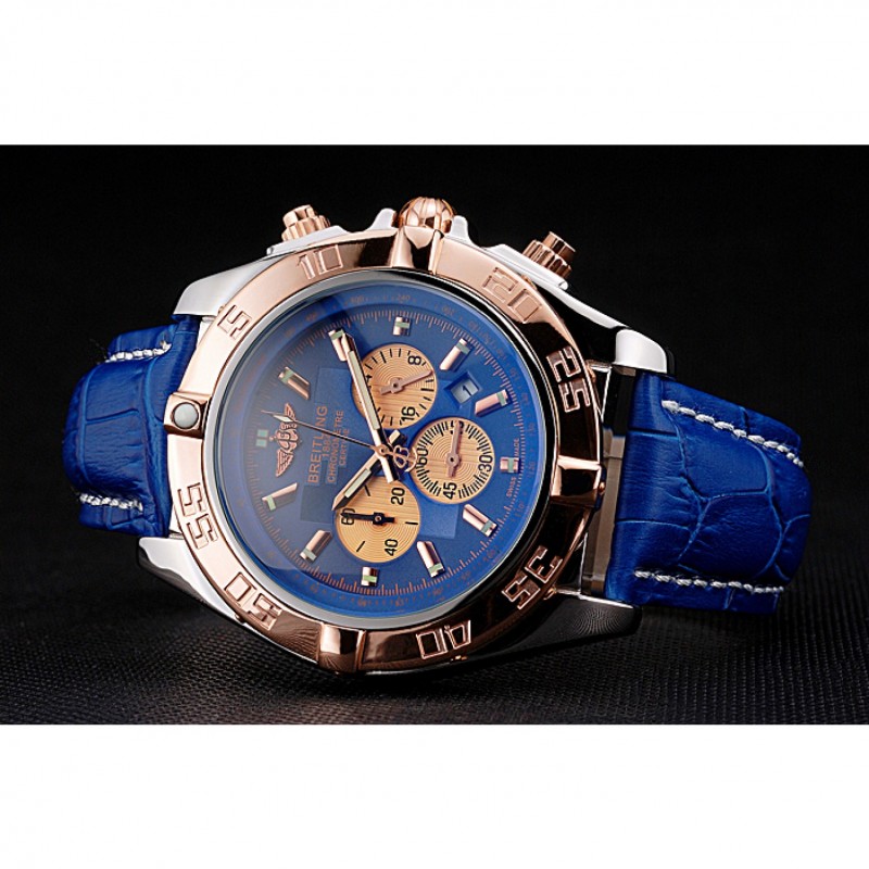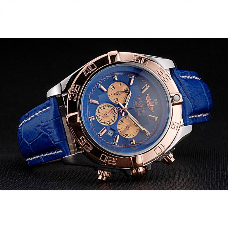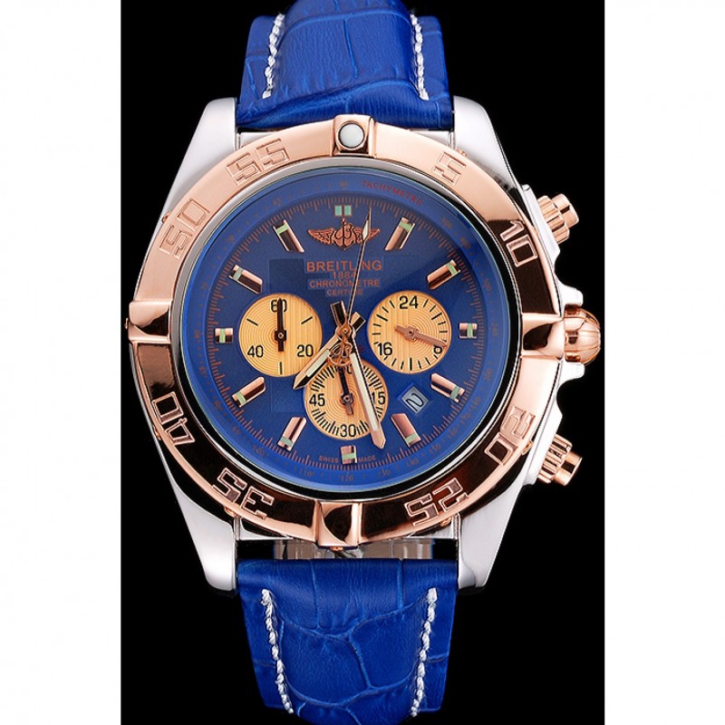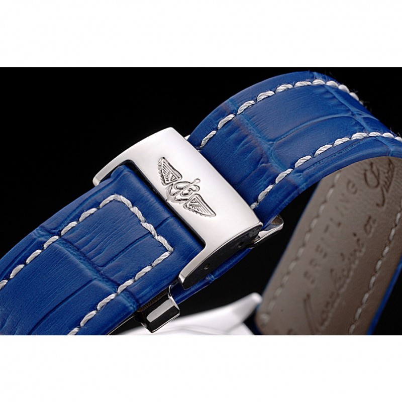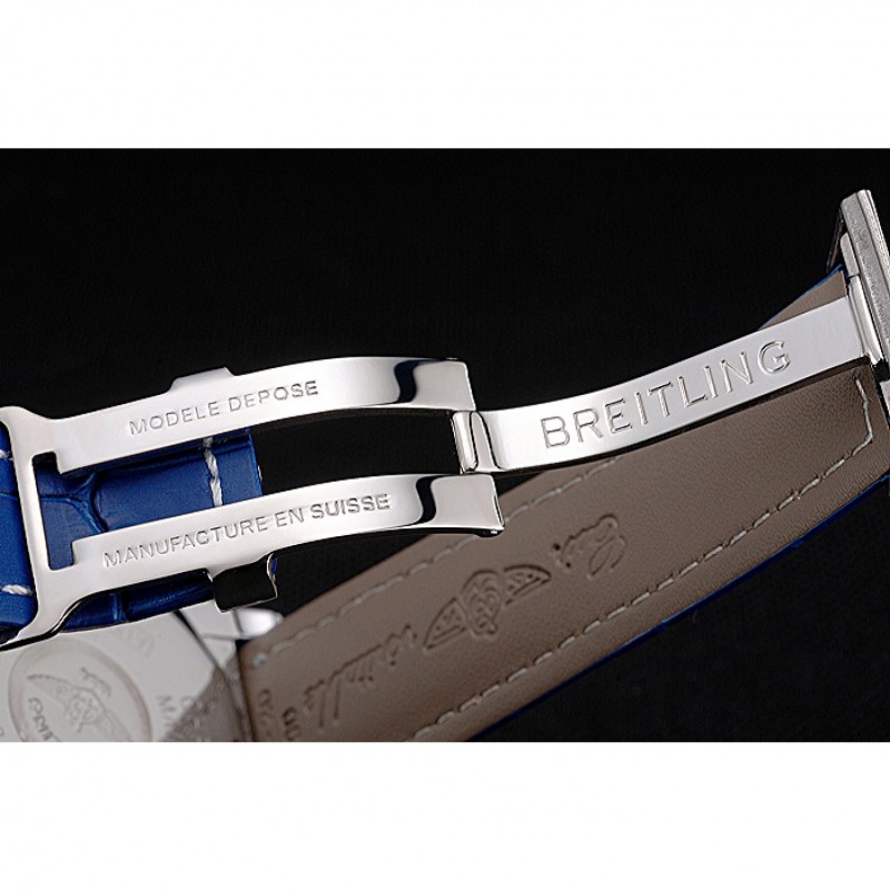 Bracciale: Cuir vero e proprio e il logo di calore in rilievo cinturino in pelle blu coccodrillo con Breitling logo inciso in acciaio inox lucido fold-in chiusura