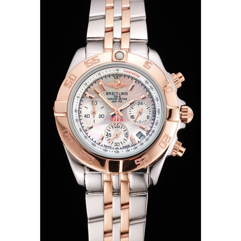 Breitling Chronomat quarzo quadrante Pearl Rose lunetta in oro Cassa in acciaio Bracciale in Two Tone
