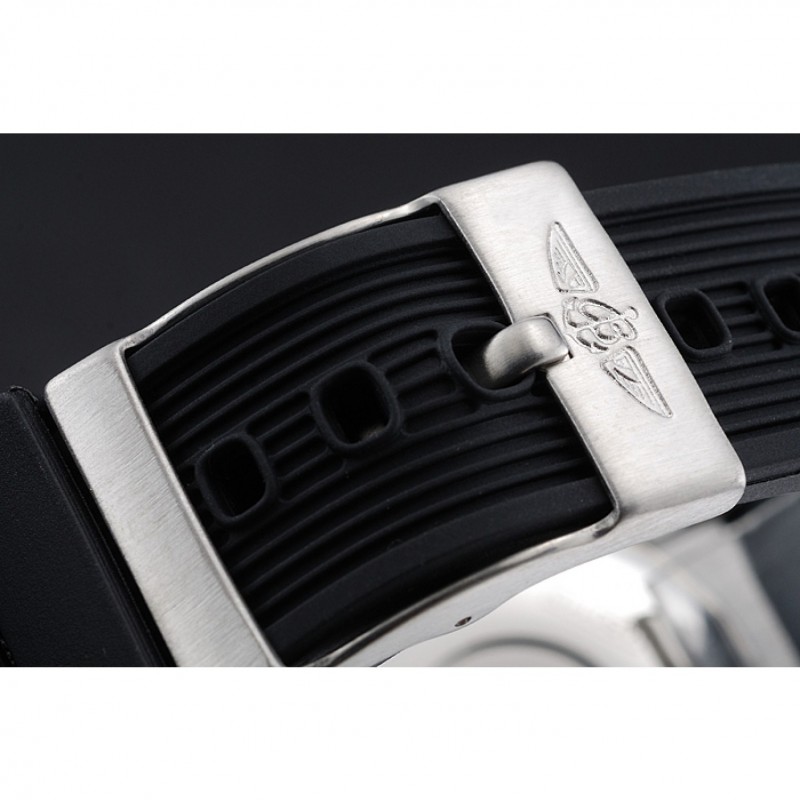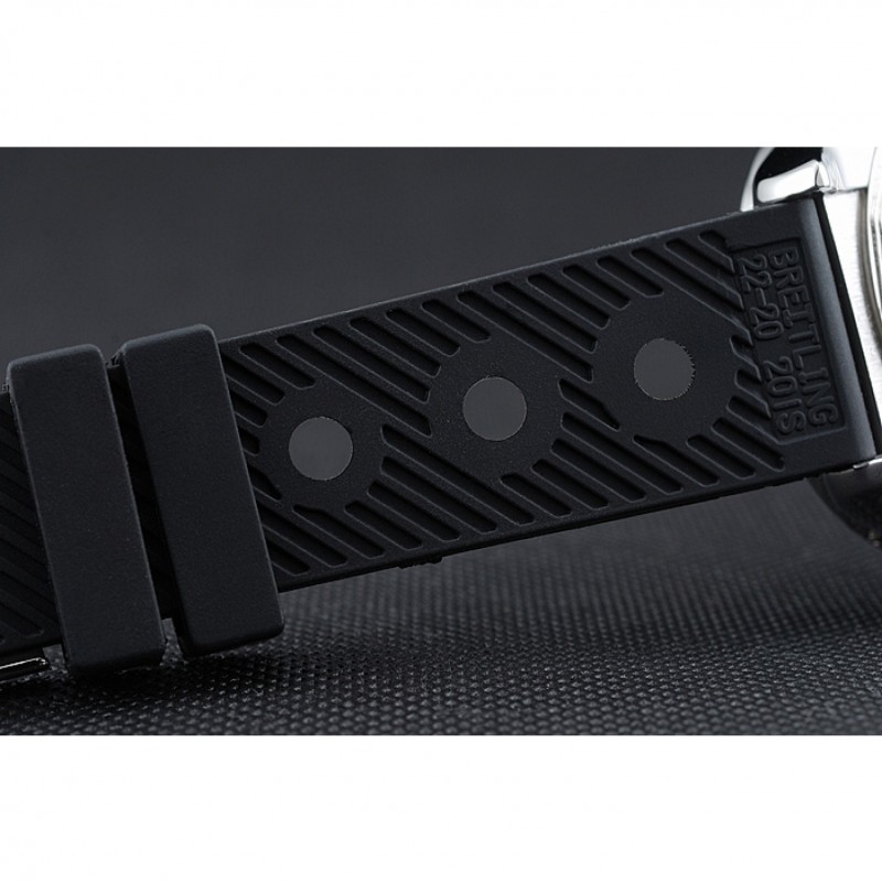 braccialetto: cinturino in caucciù nero a coste con chiusura a gancio fibbia in acciaio inciso con Breitling logo sopra
