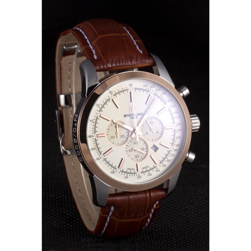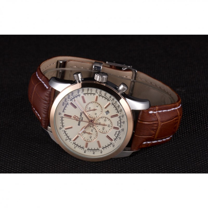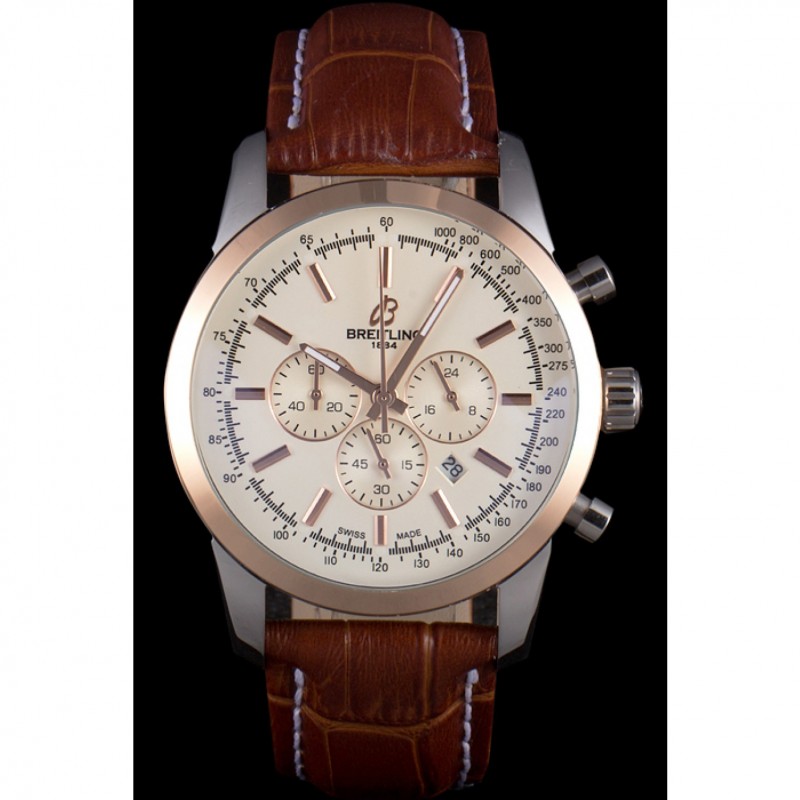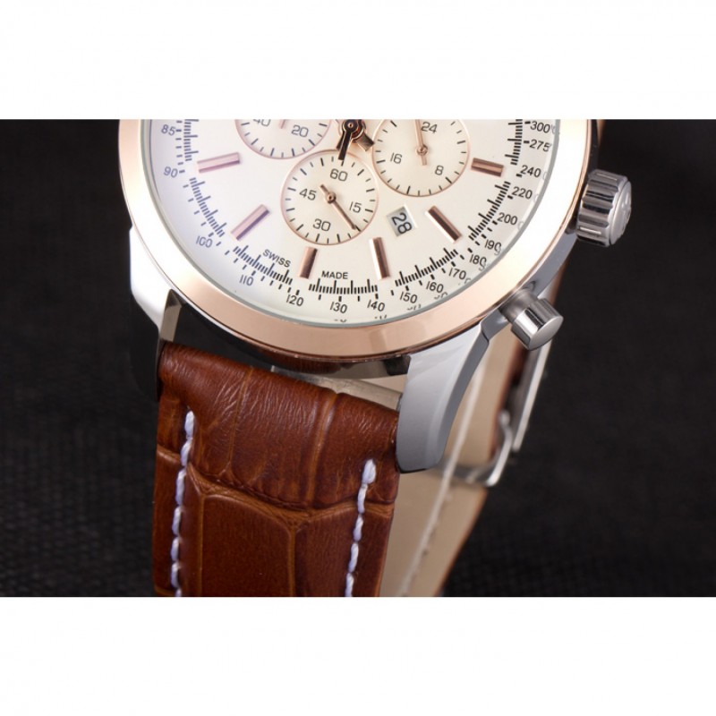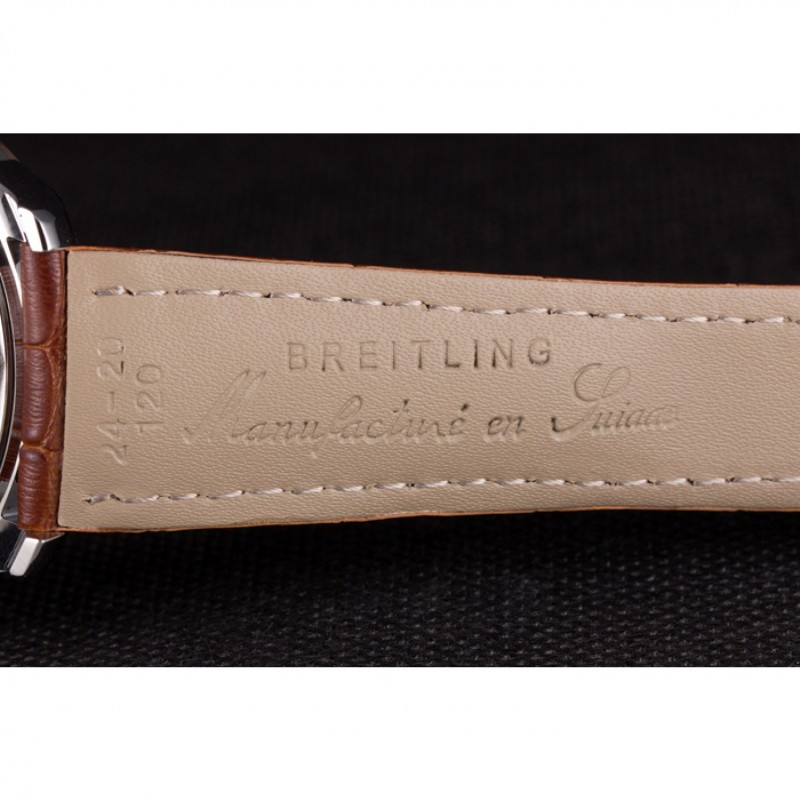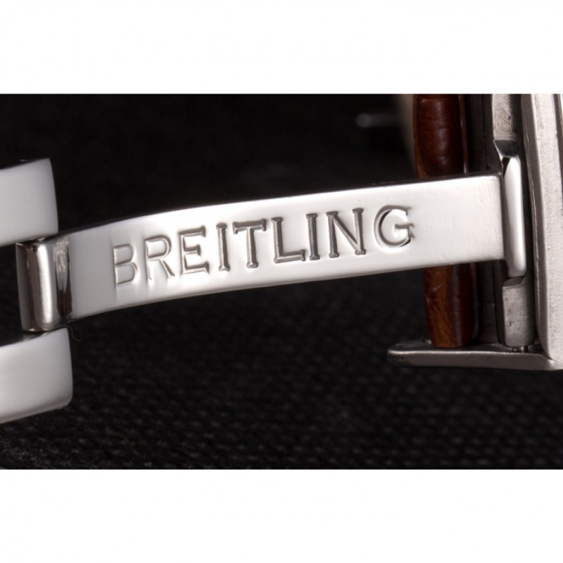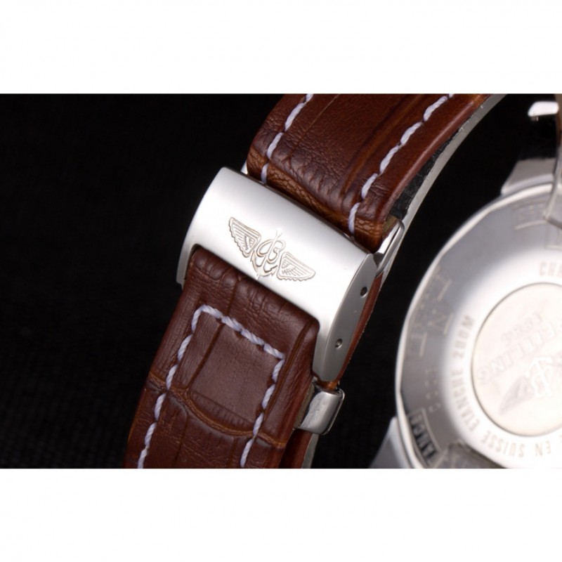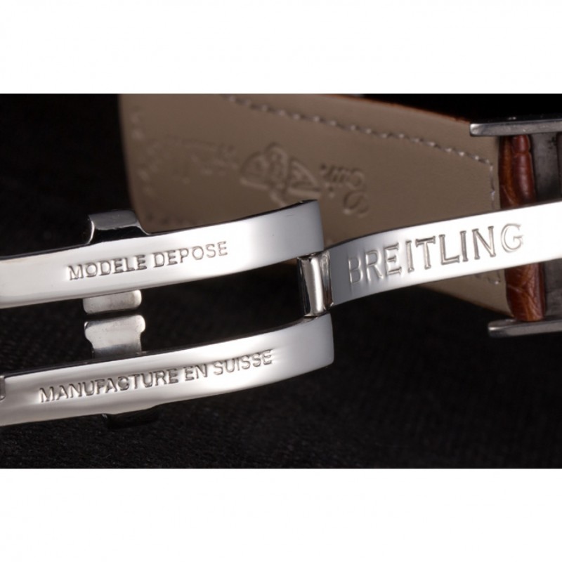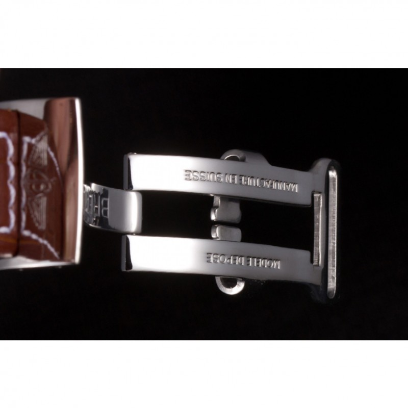 Bracciale: di calore in rilievo Breitling cinturino marrone in pelle di coccodrillo con cuciture bianche filo e un logo Breitling incisi fold-in fibbia in acciaio inox