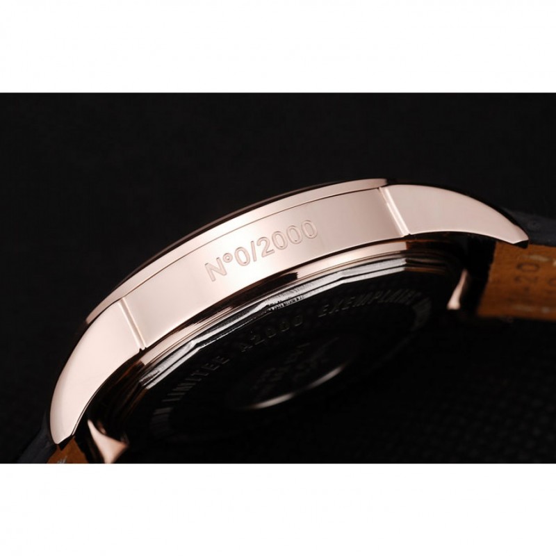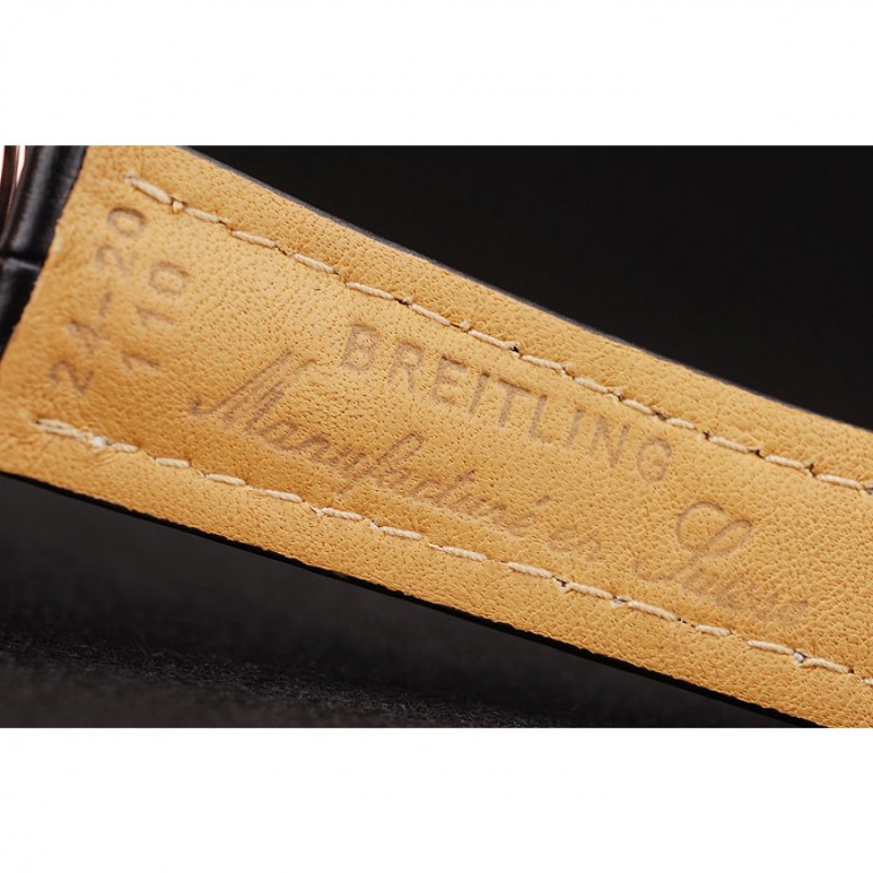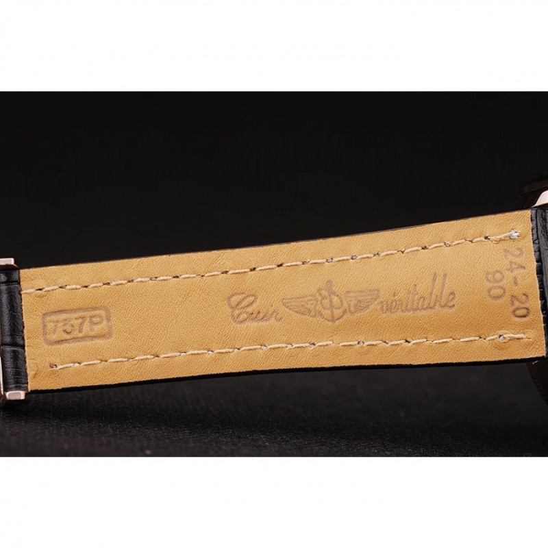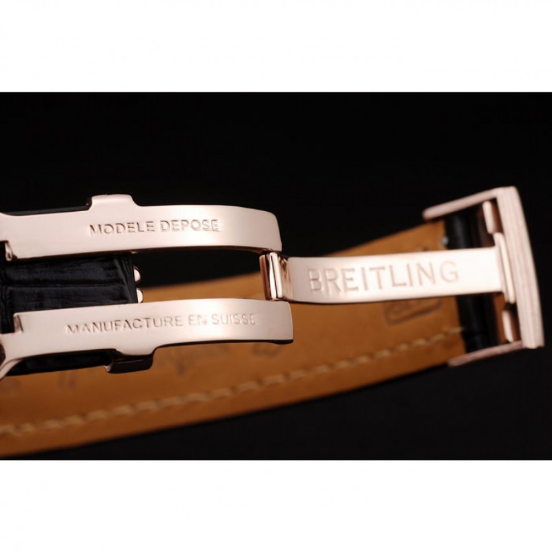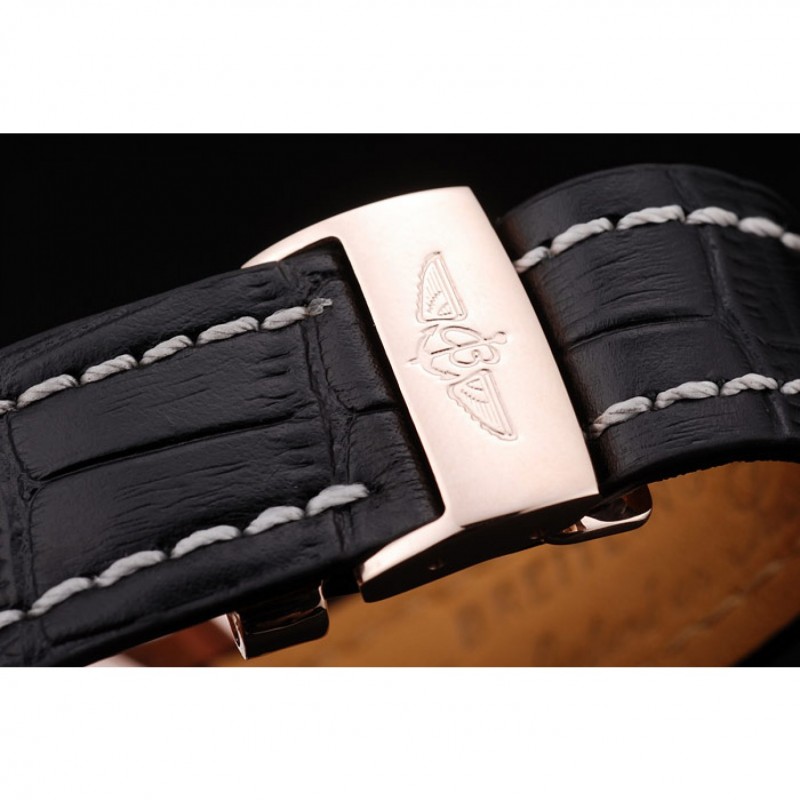 braccialetto: calore impresso Breitling cinturino in pelle di coccodrillo nero con il bianco cuciture filo e un logo Breitling inciso pieghevole in placcato oro rosa chiusura
