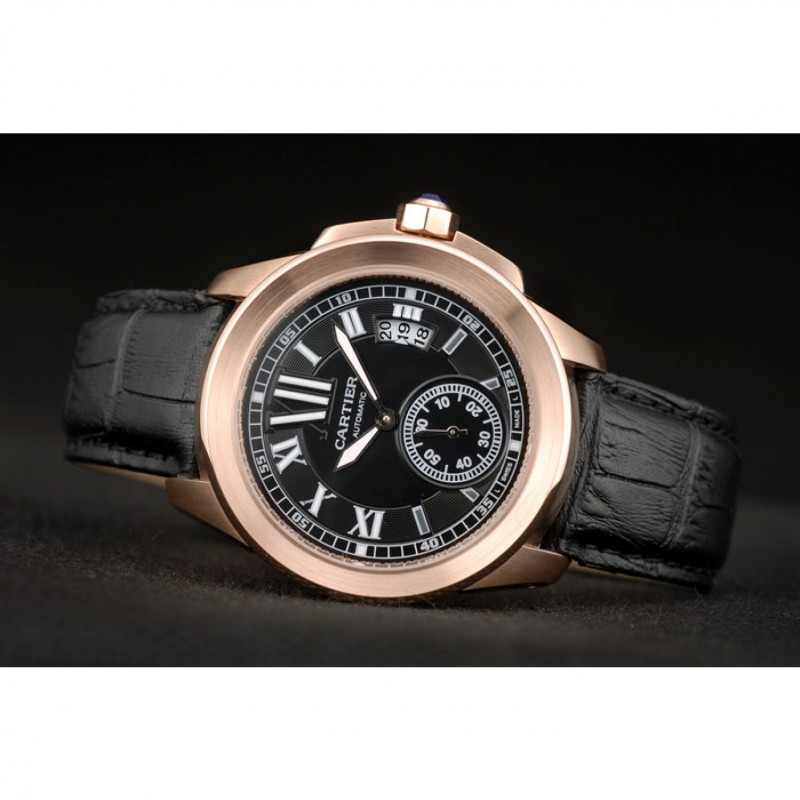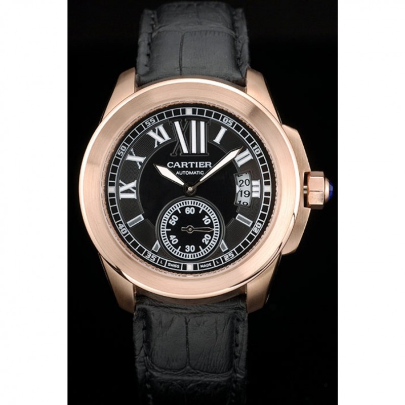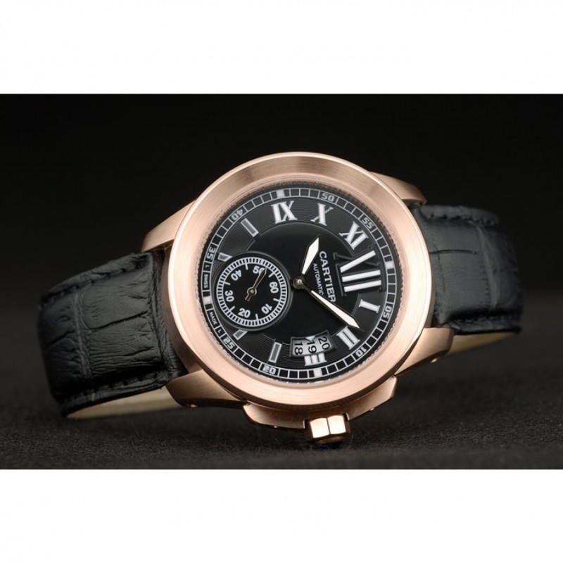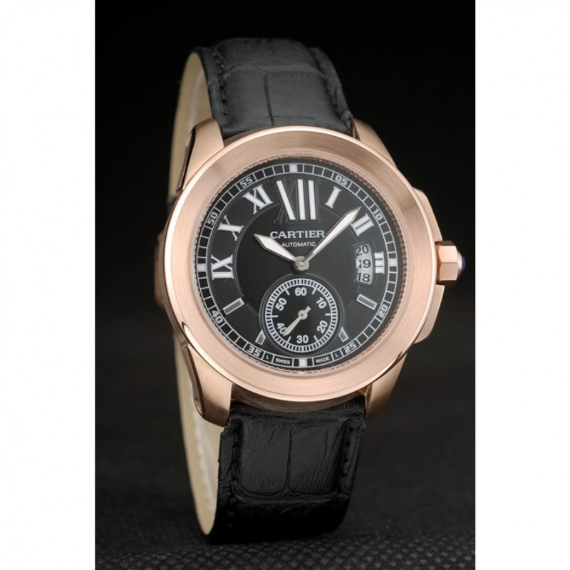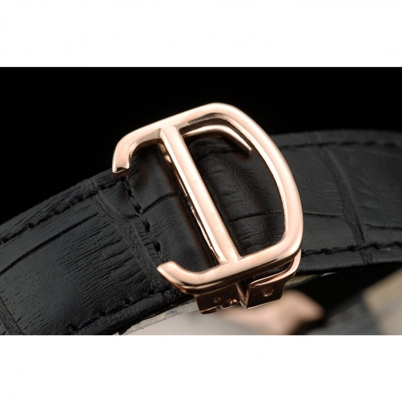 Bracciale: cinturino in pelle di calore Cartier goffrata in coccodrillo nero con rosa-oro placcato fibbia chiusura