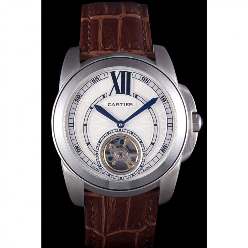 Bracciale: di calore in rilievo Cartier timbrato luce cinturino in pelle di coccodrillo marrone con catenaccio dell’acciaio inossidabile nascosto