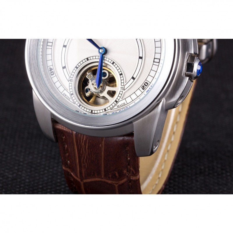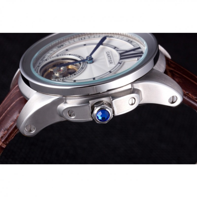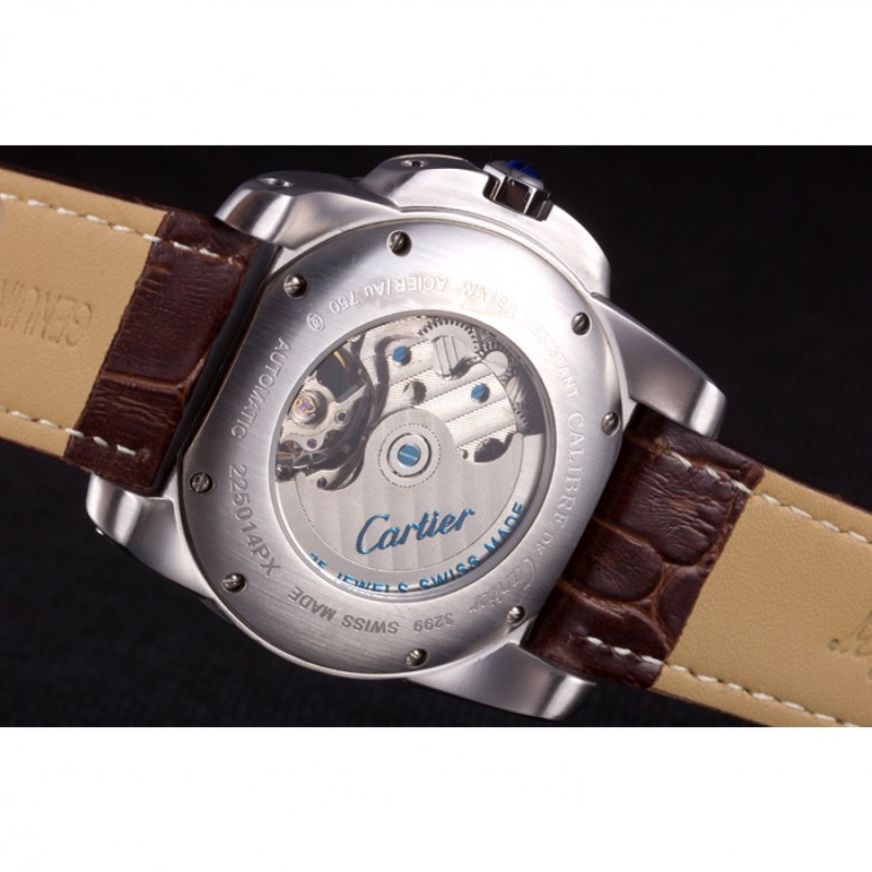 Indietro: incisione Cartier spazzolato inossidabile avvitato indietro con meccanica-rivelando centro trasparente