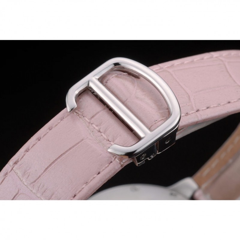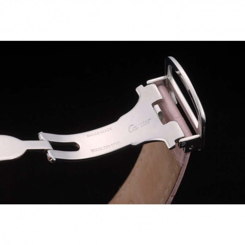 Bracciale: cinturino in pelle di coccodrillo rosa calore Cartier in rilievo con acciaio inox lucido fold-in fibbia chiusura