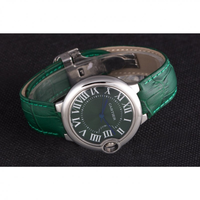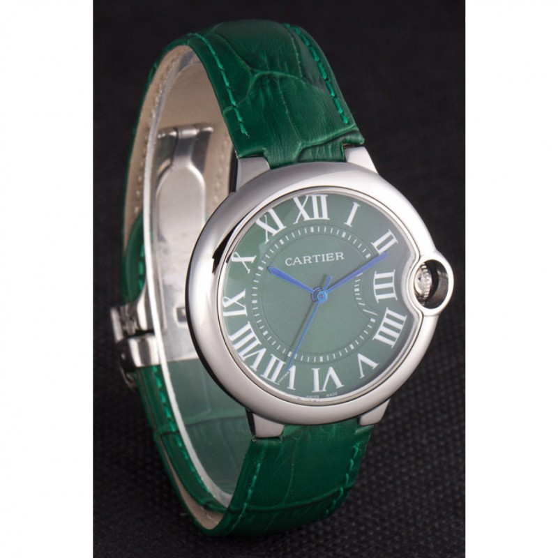 Bracciale: cinturino in pelle di coccodrillo verde calore Cartier in rilievo con fibbia in acciaio inox lucidato