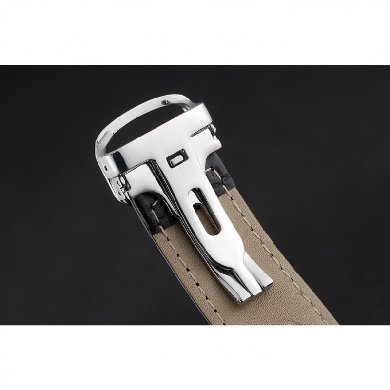 Bracciale: cinturino in pelle di coccodrillo nero calore Cartier in rilievo con acciaio inox lucido fold-in chiusura