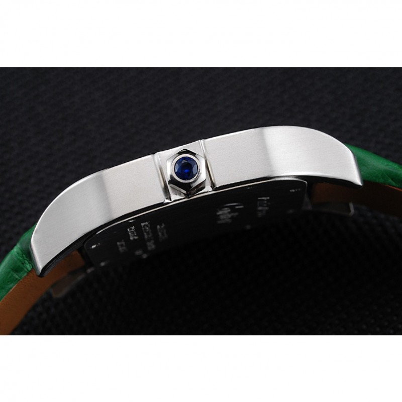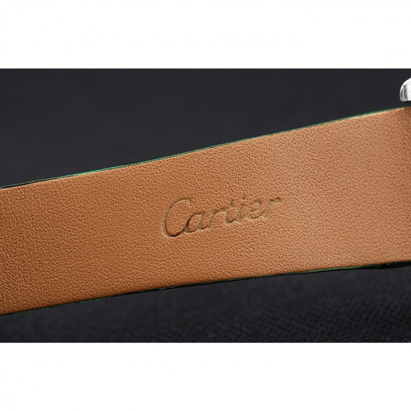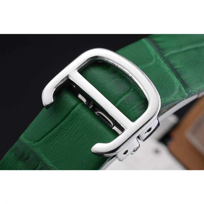 Bracciale: cinturino in pelle di coccodrillo verde calore Cartier in rilievo con acciaio inossidabile lucidato fold-in chiusura