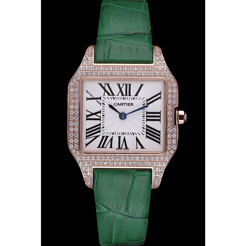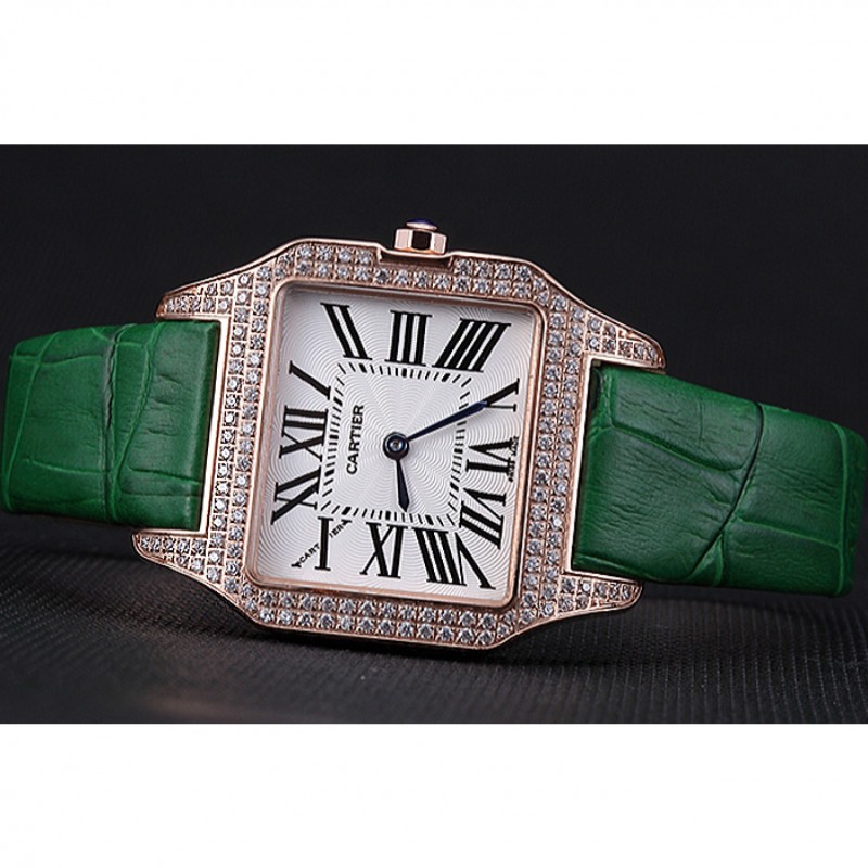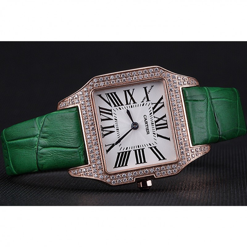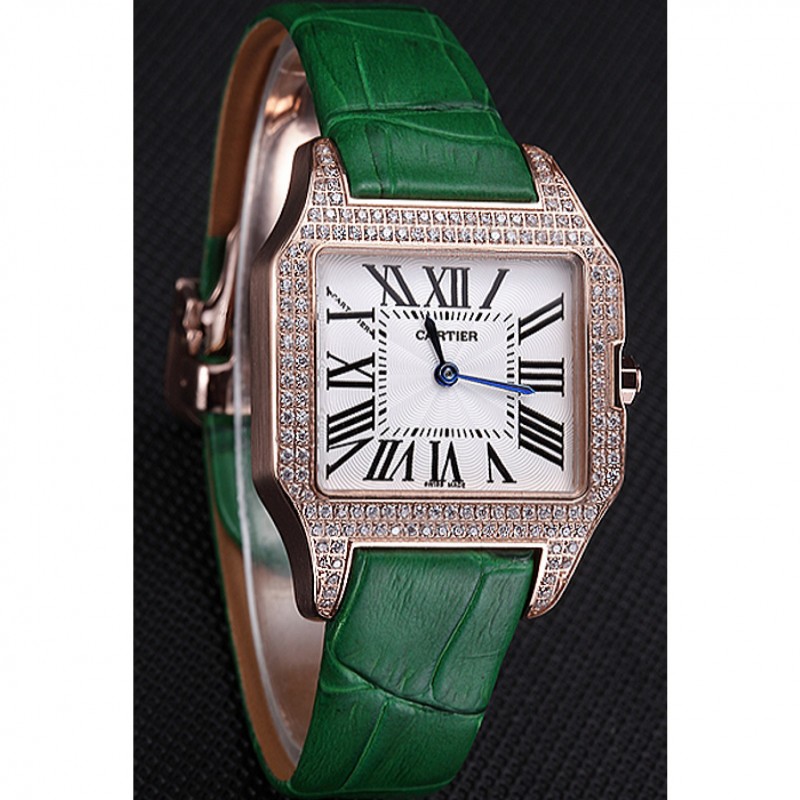 braccialetto: placcato calore Cartier impresso cinturino in coccodrillo verde con 18k rosa-oro piega-in chiusura