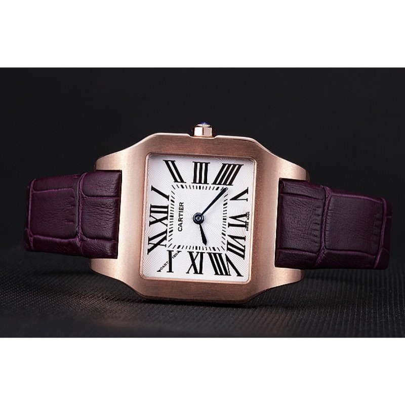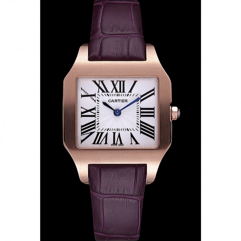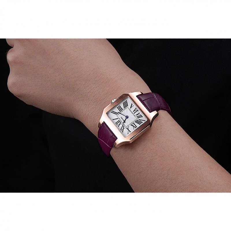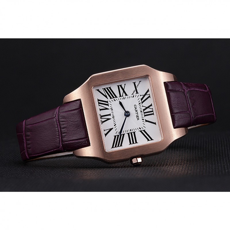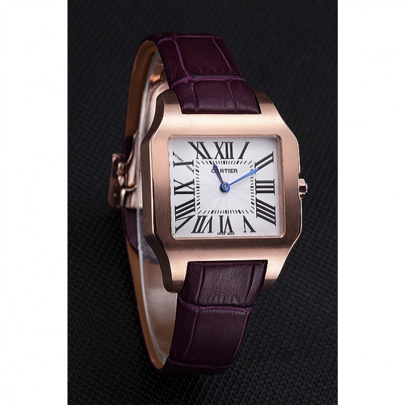 braccialetto: placcato calore Cartier impresso cinturino in coccodrillo viola con 18k rosa-oro piega-in chiusura