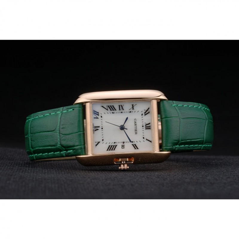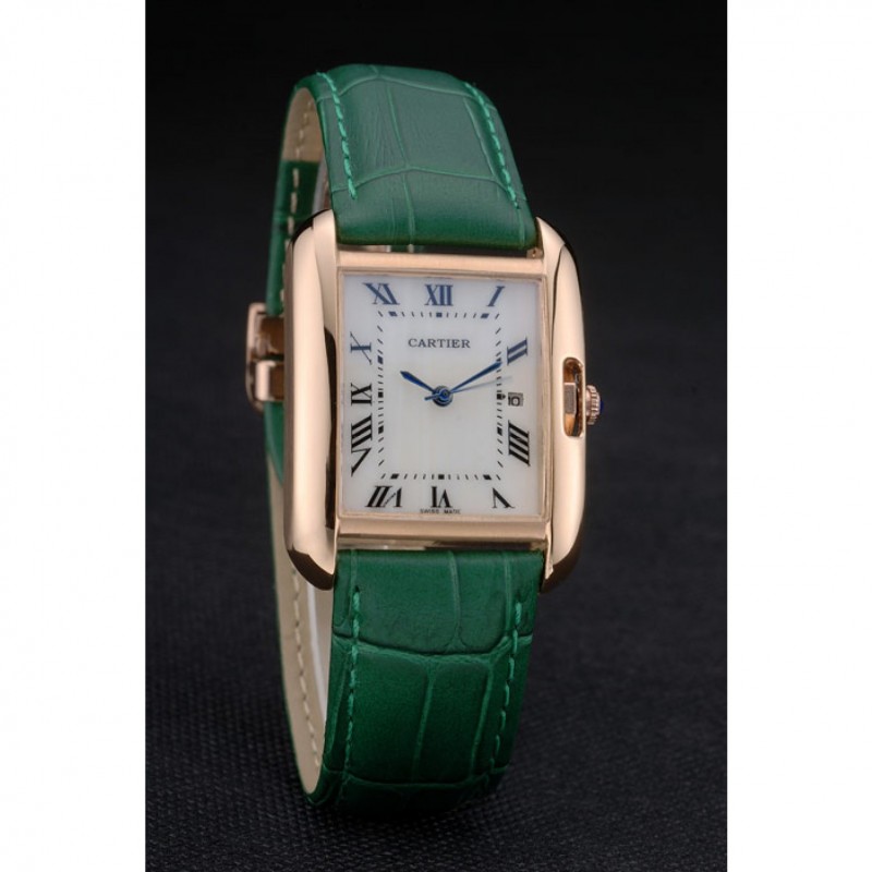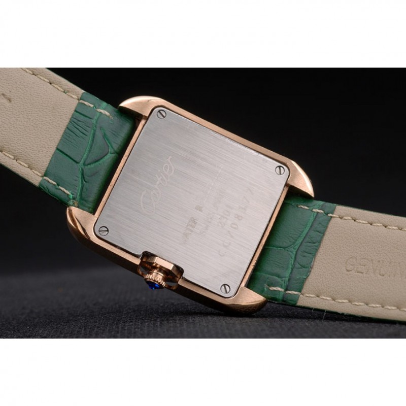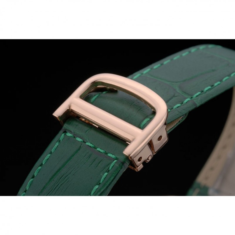 braccialetto: placcato calore Cartier impresso cinturino in coccodrillo verde con 18k rosa-oro piega-in fibbia chiusura