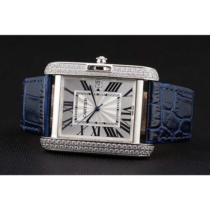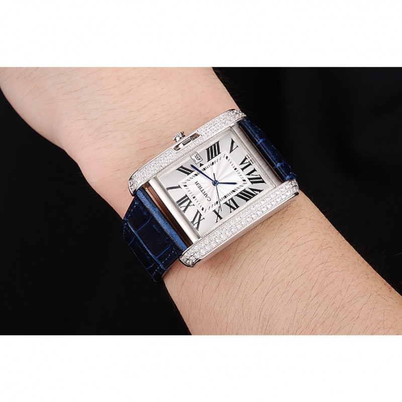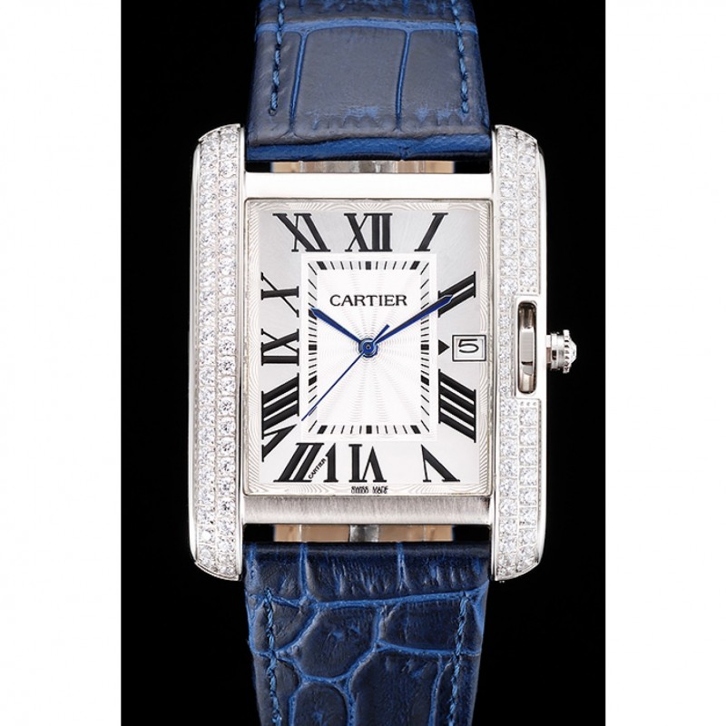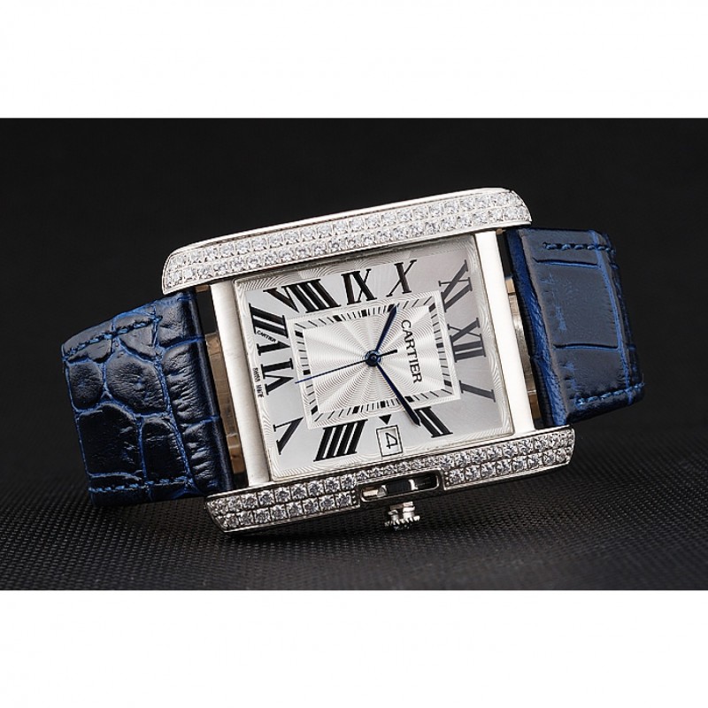 braccialetto: cinturino in pelle blu coccodrillo calore Cartier in rilievo con acciaio inox lucido armadio a fibbia chiusura