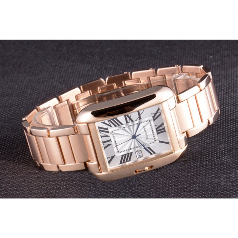 Cartier Tank Anglaise 36 millimetri quadrante bianco Rosa cassa e bracciale in oro