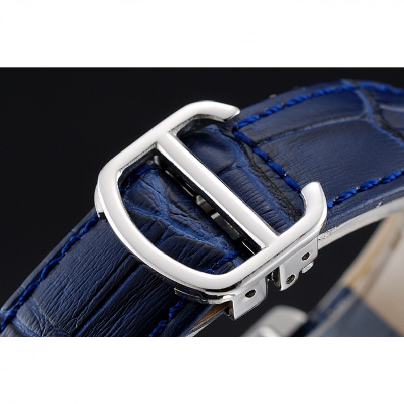 Bracciale: cinturino in pelle blu coccodrillo calore Cartier in rilievo con acciaio inossidabile lucidato fold-in chiusura