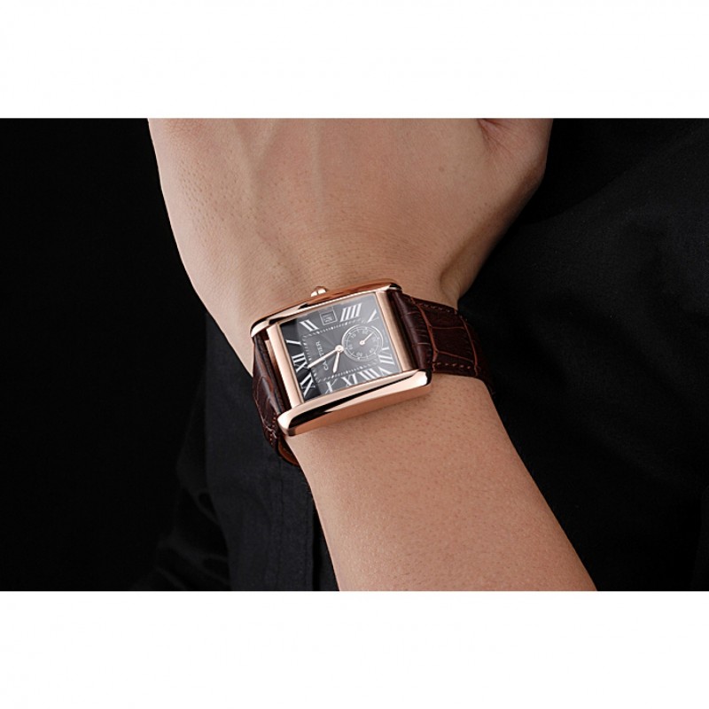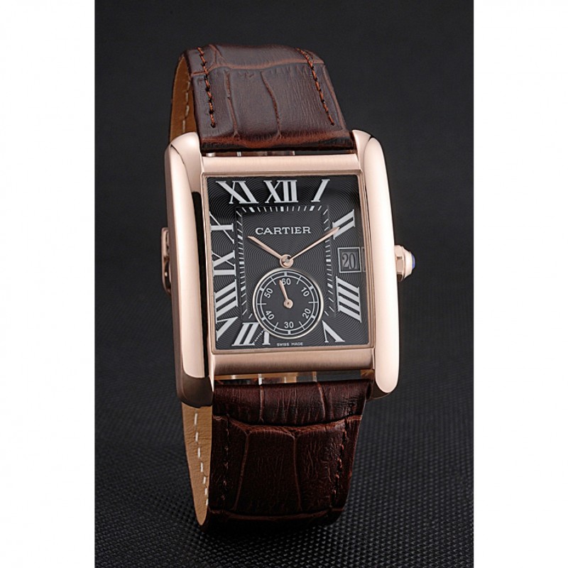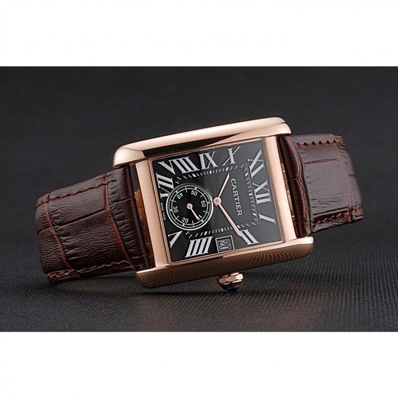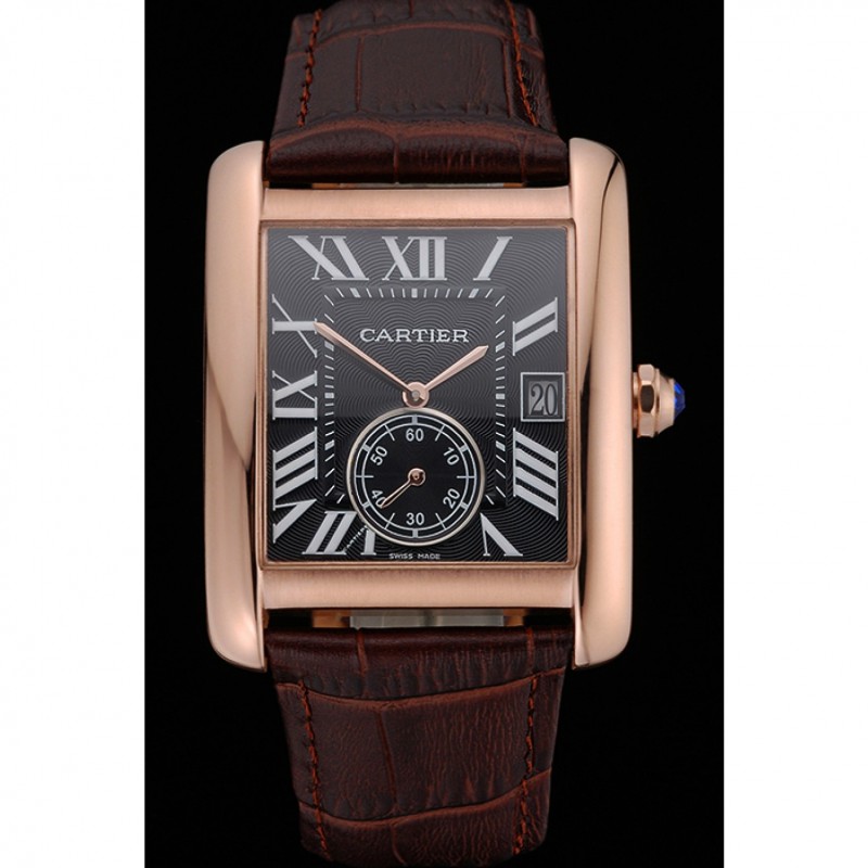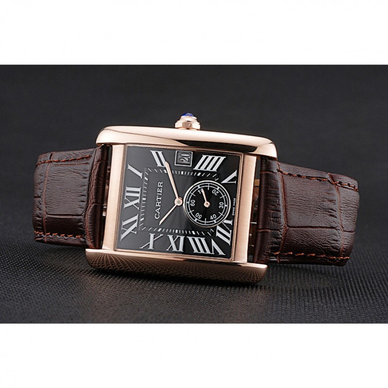 Cartier Tank MC quadrante nero cassa in oro cinturino in pelle marrone 622.582