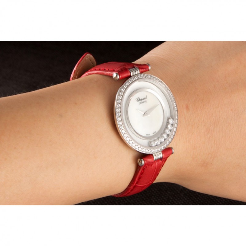 braccialetto: calore Chopard impresso cinturino in coccodrillo rosso con Chopard incisa acciaio inox lucido gancio fibbia chiusura