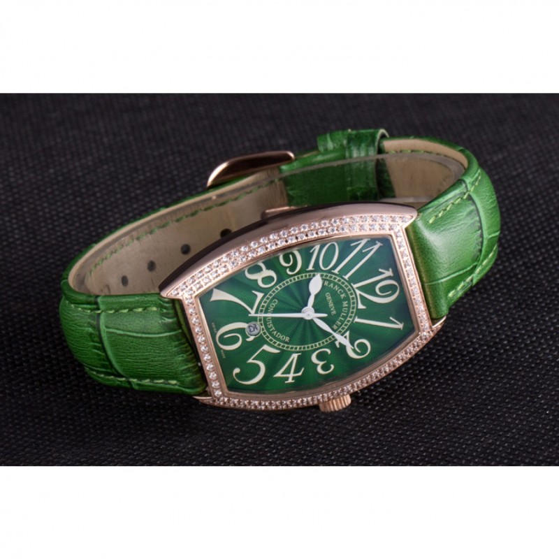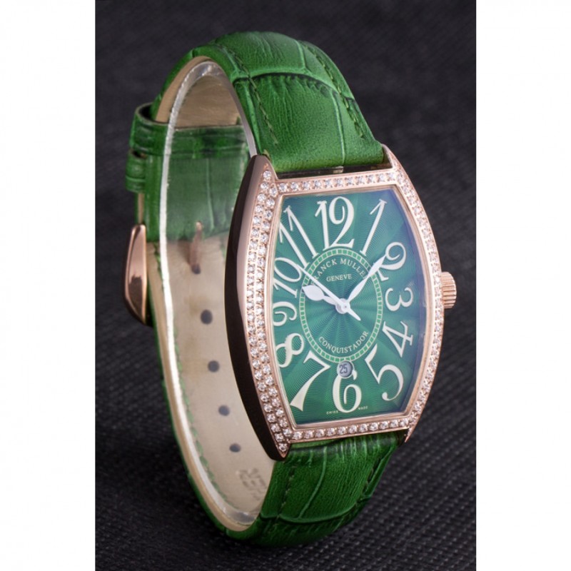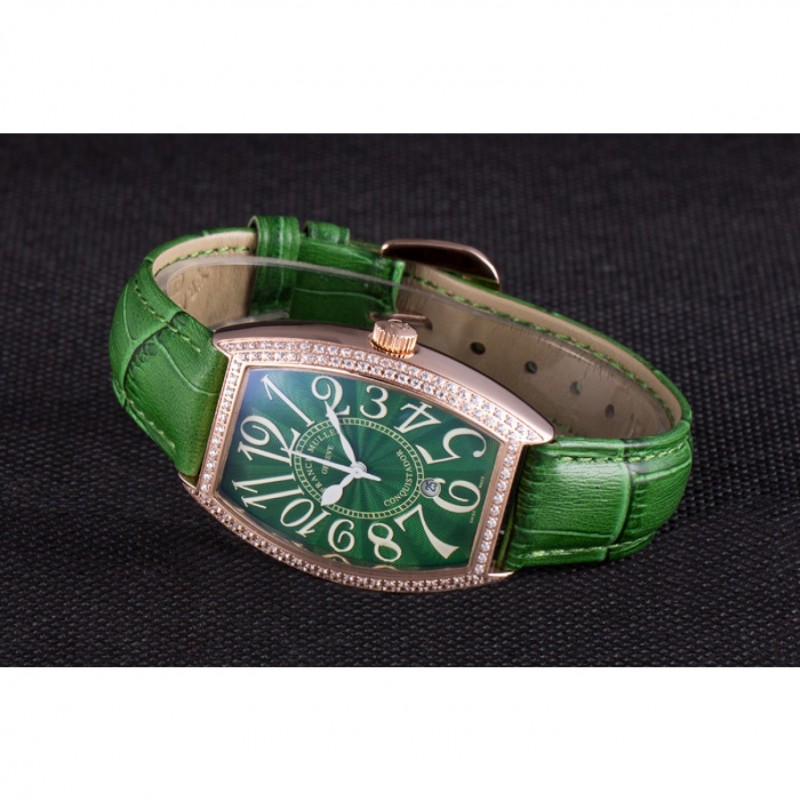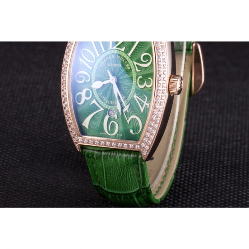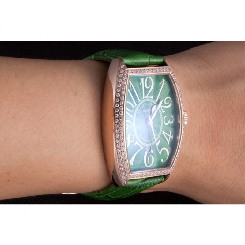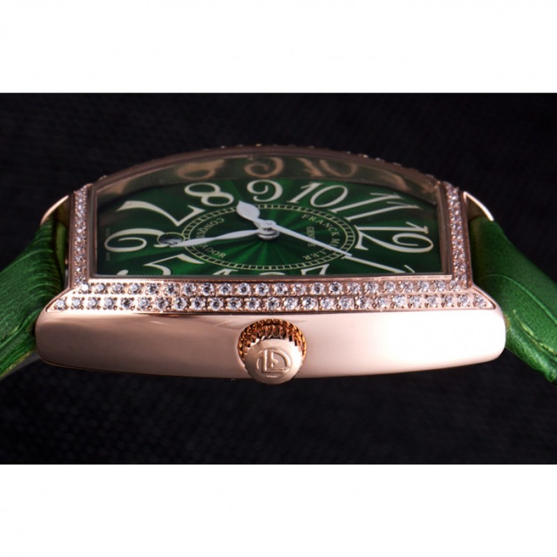 Bracciale::>corona Franck Muller Geneve calore impresso cinturino in coccodrillo verde con perno diamante 18k oro rosa placcato gancio fibbia chiusura