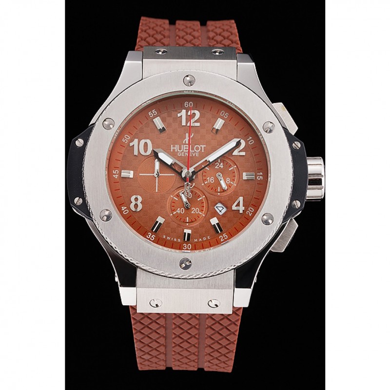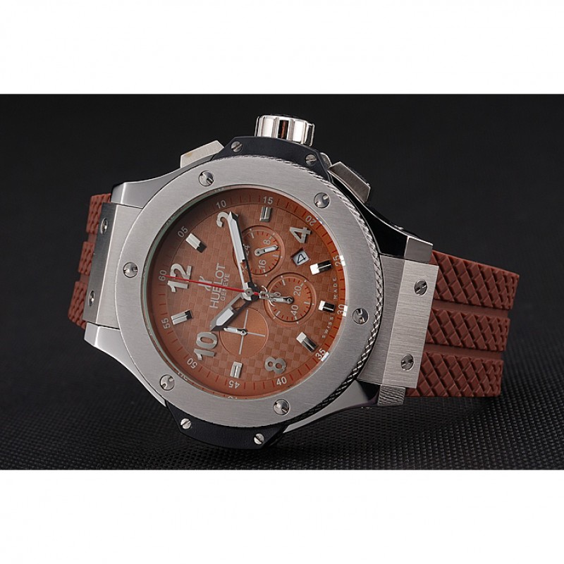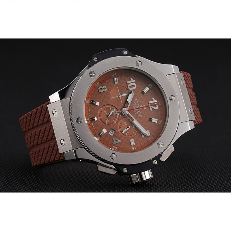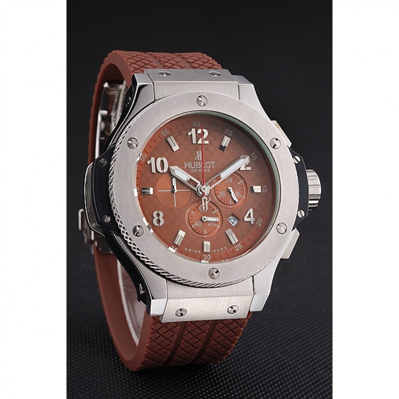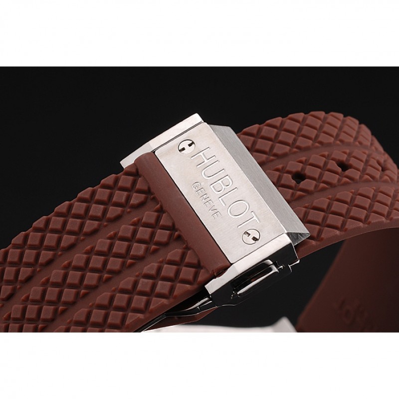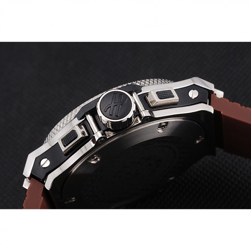Crown: Cutwork lucido corona in acciaio inossidabile con incisione ‘H’ e due rettangolari corone a pulsante su entrambi i lati, ciascuno fissato con guarnizioni in gomma marrone