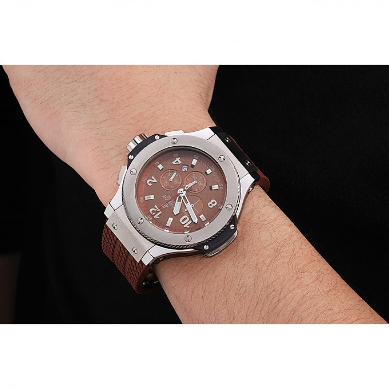 braccialetto : Tessuto elastico marrone con fibbia in acciaio inox gancio a pulsante e le iscrizioni Hublot