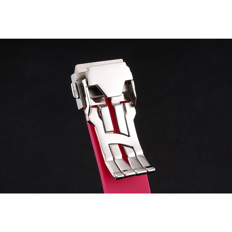Crown: Cutwork spazzolato corona in acciaio inox con incisione ‘H’ e due rettangolari corone a pulsante su entrambi i lati, ciascuno fissato con guarnizioni di gomma rosa