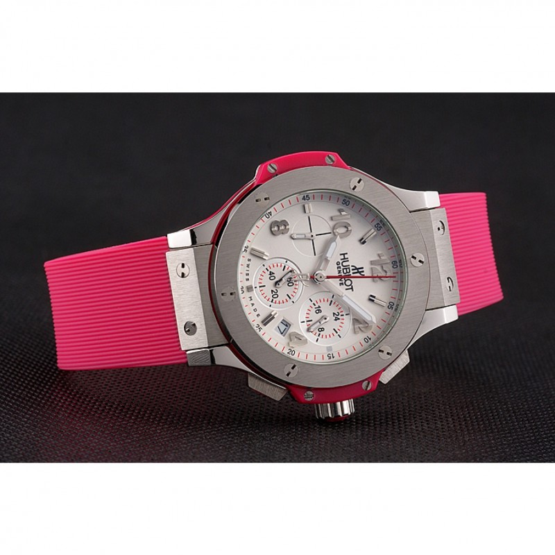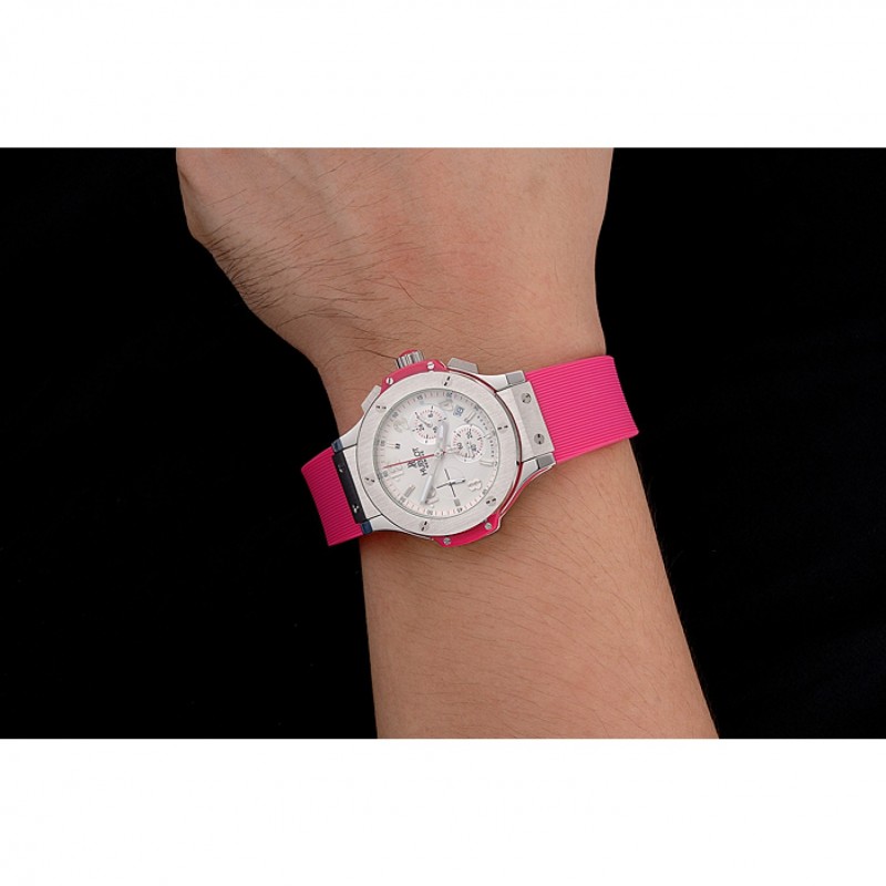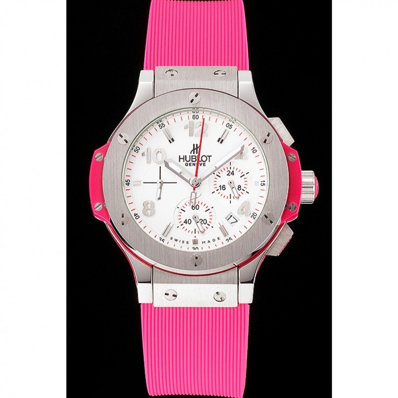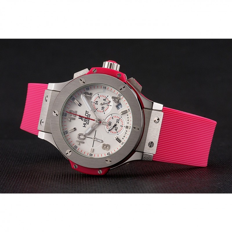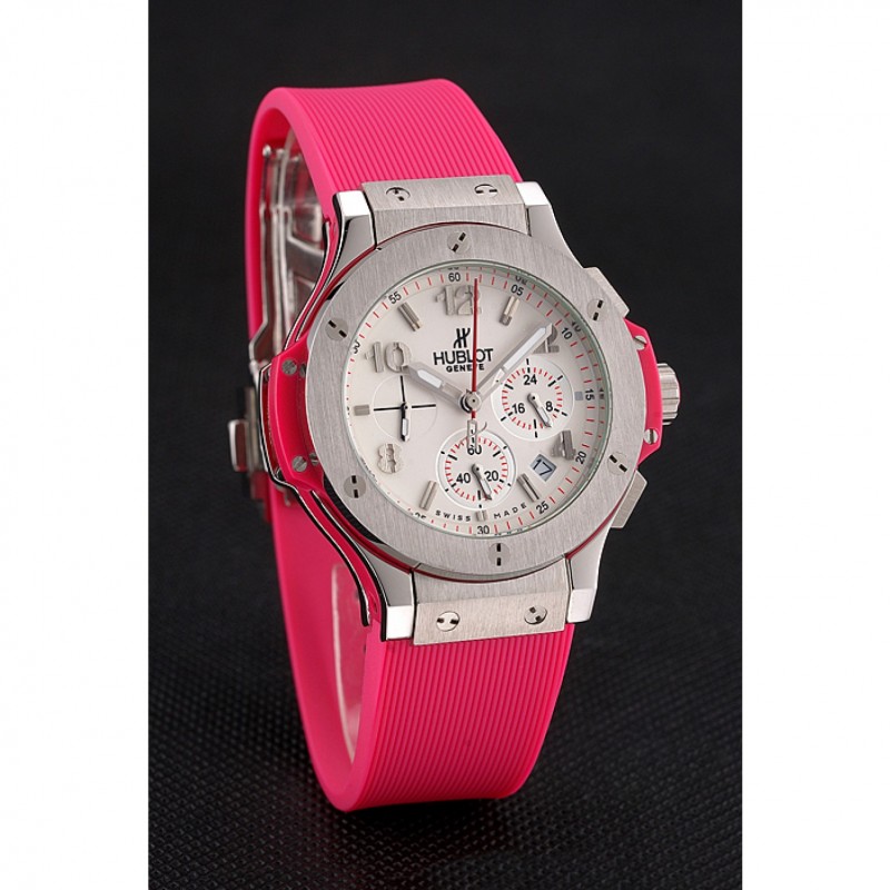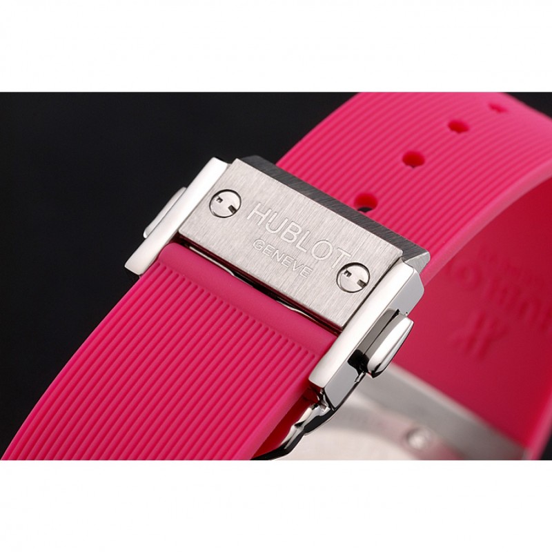 braccialetto : Tessuto elastico rosa con chiusura gancio a pulsante in acciaio inox spazzolato e incisioni Hublot