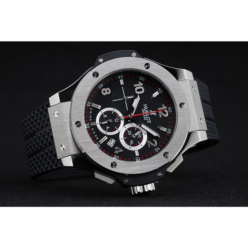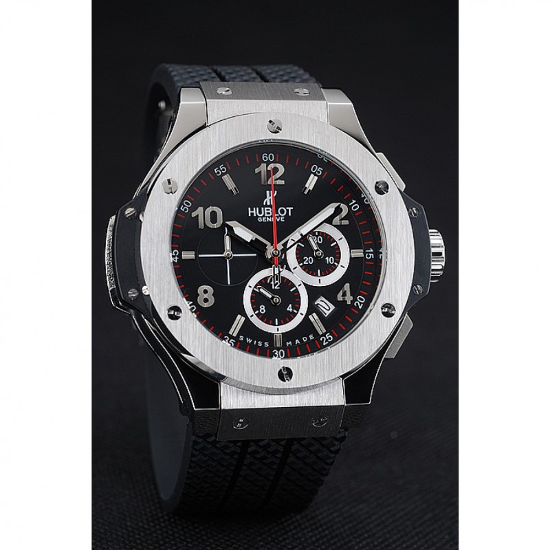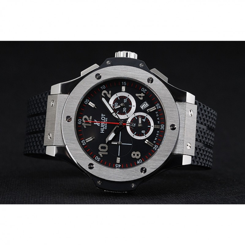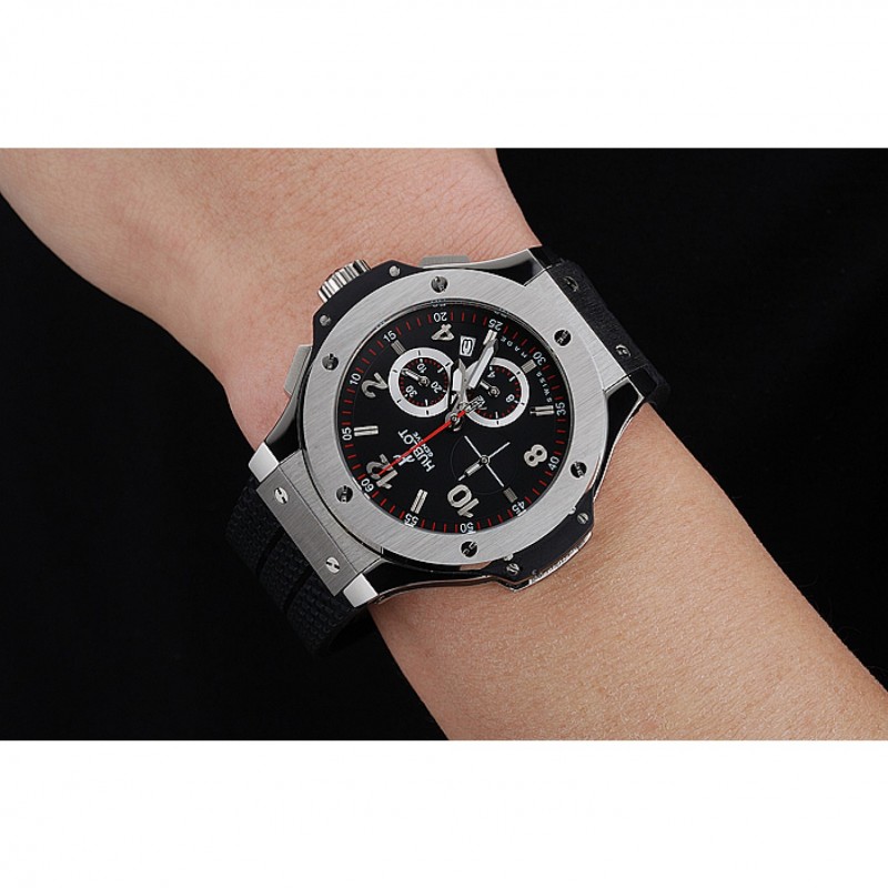 Corona: Lucido corona intaglio acciaio inossidabile con Hublot prigioniera logo gomma e gomma prigioniera inossidabile corone a pulsante su entrambi i lati di essa