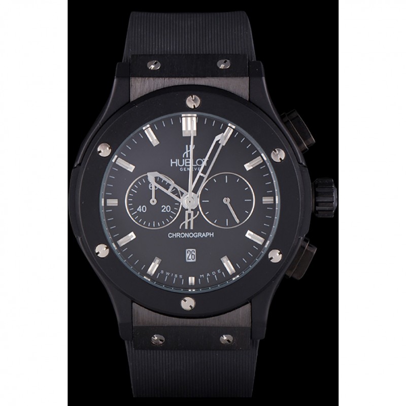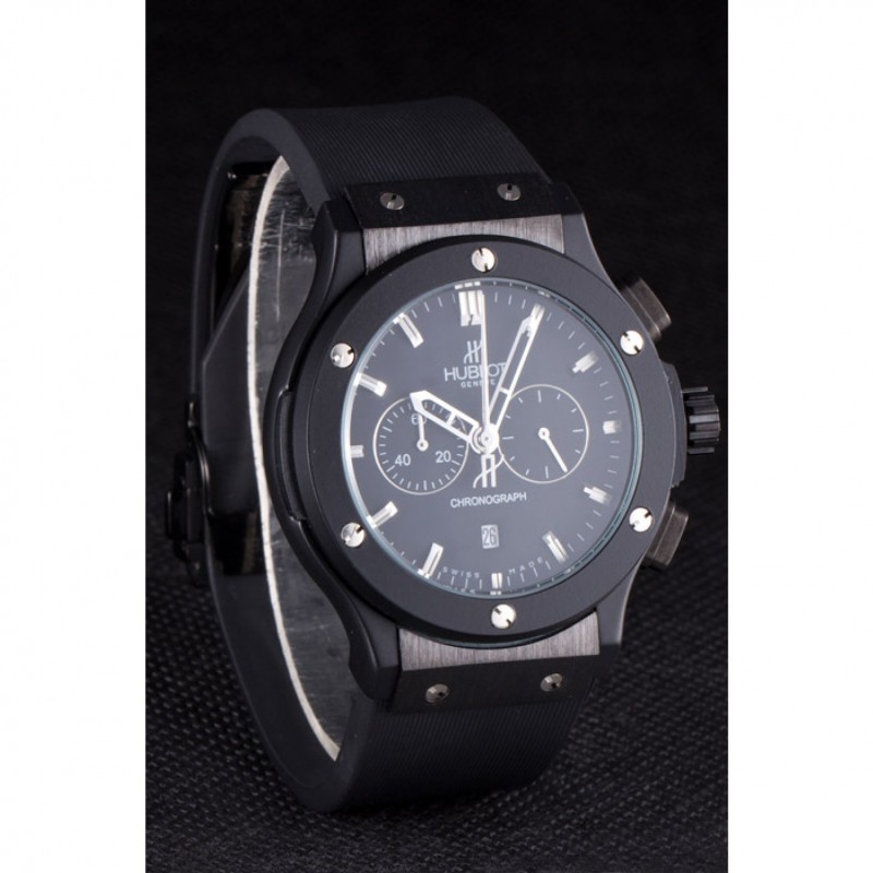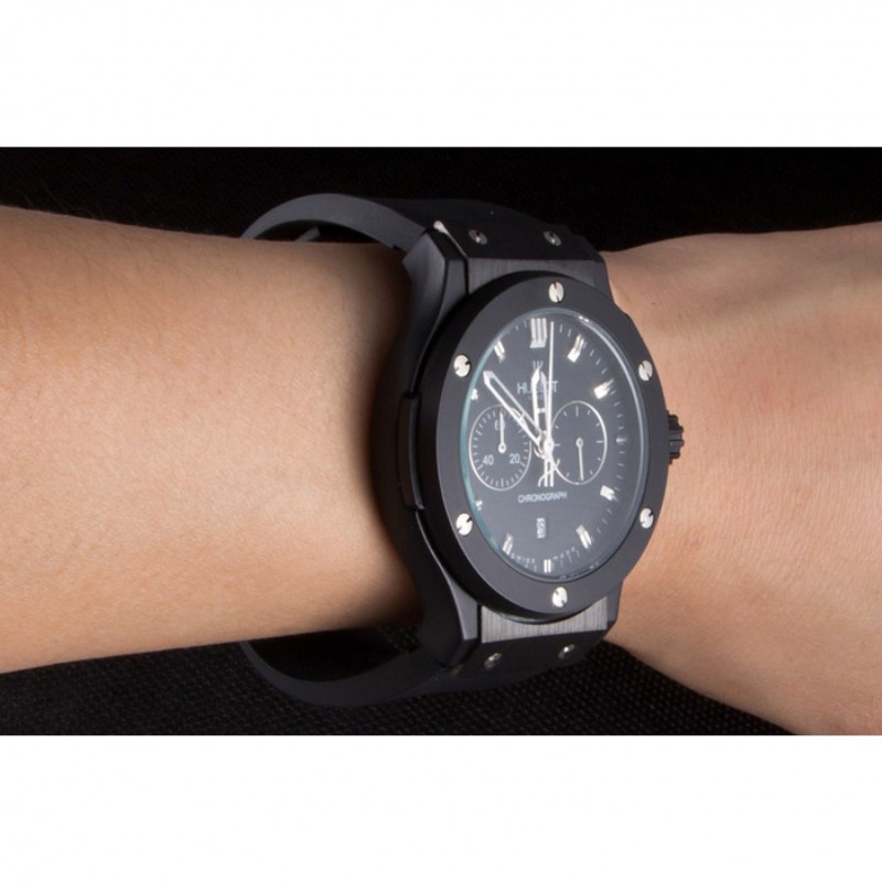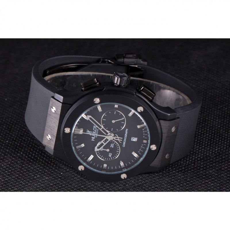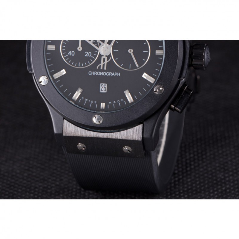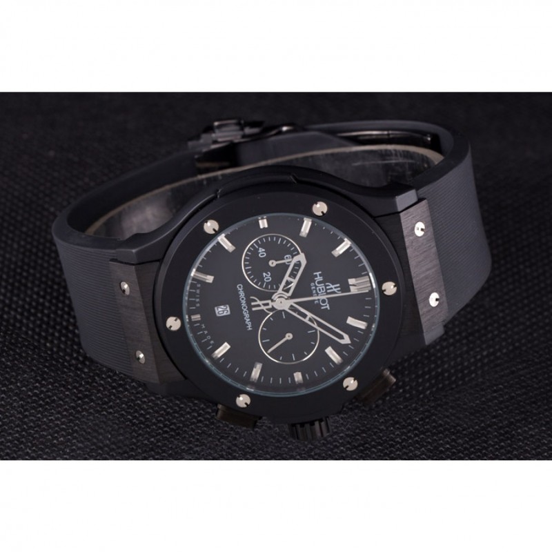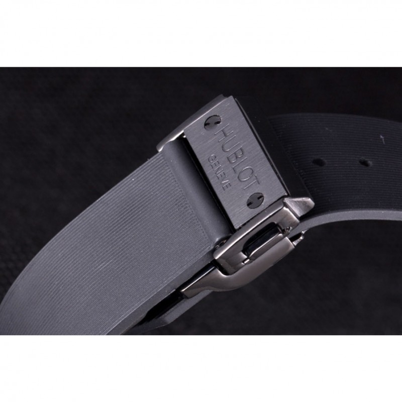 braccialetto: calore Hublot Geneve goffrato linea scanalatura cinturino in gomma nera con Hublot Geneve incisa gancio chiusura push-rilascio di ioni-plated