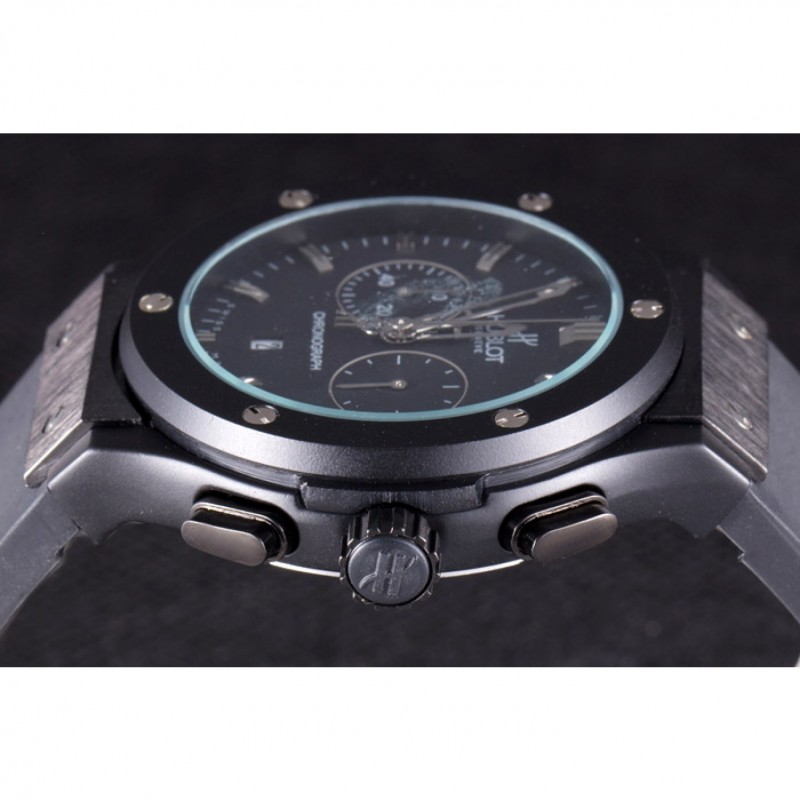 Corona: Hublot logo inciso nero perno gomma ione-placcato corona intaglio con oblunghe corone a pulsante su entrambi i lati di essa