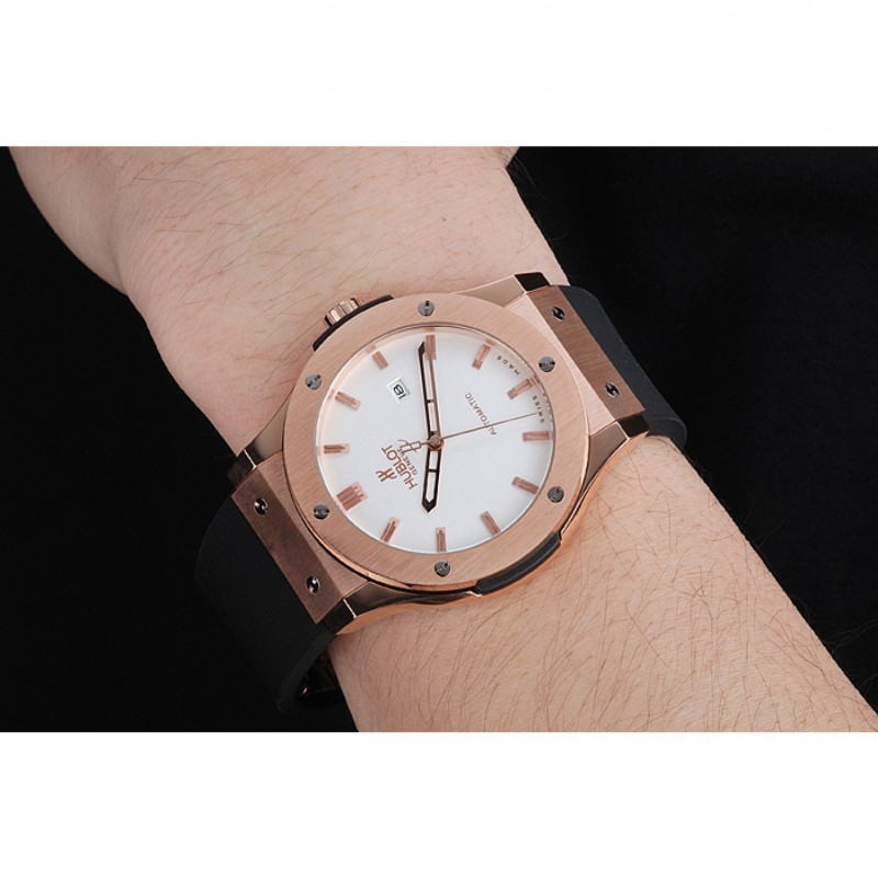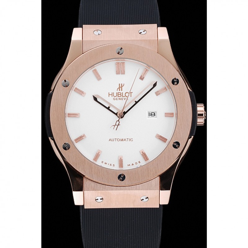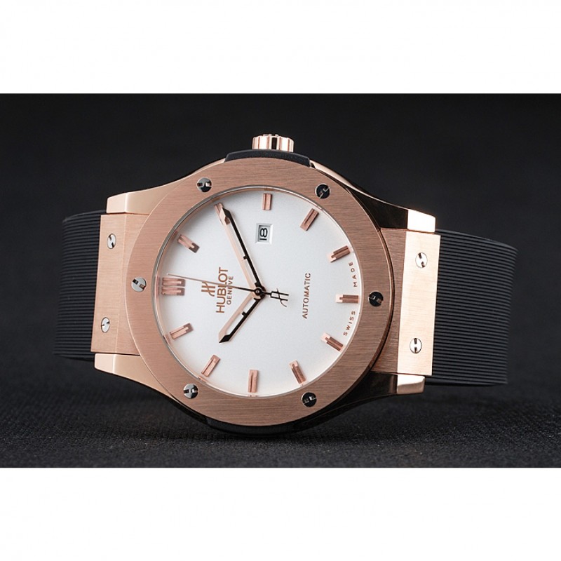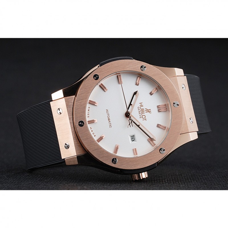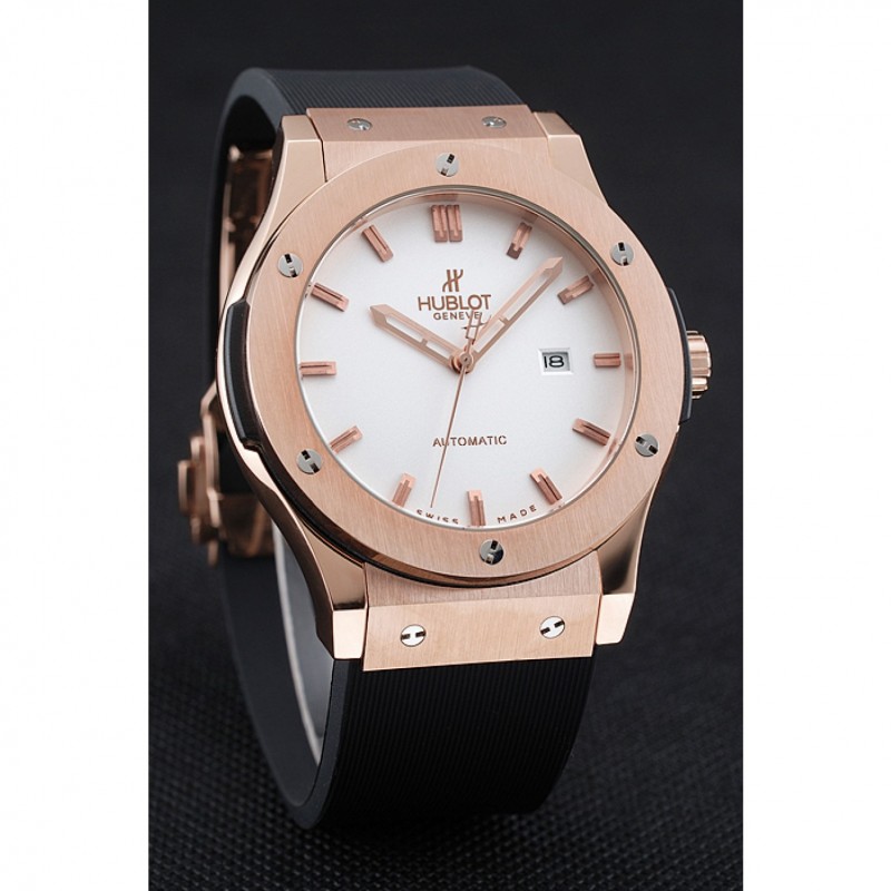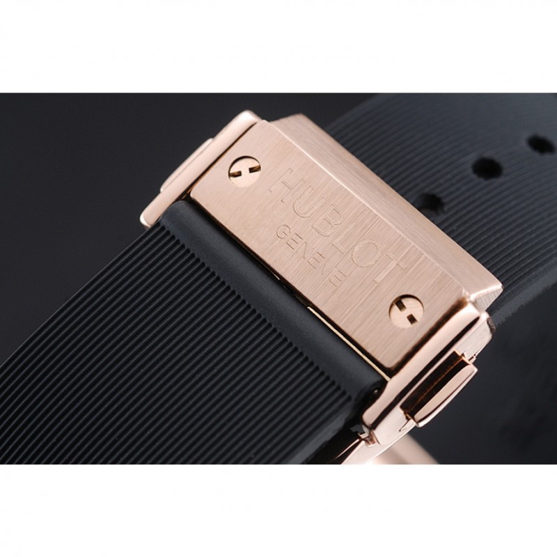 Bracciale: calore Hublot Geneve goffrato linea scanalatura cinturino in gomma nera con Hublot Geneve incisa placcato 18k oro rosa catenaccio del gancio spingere release