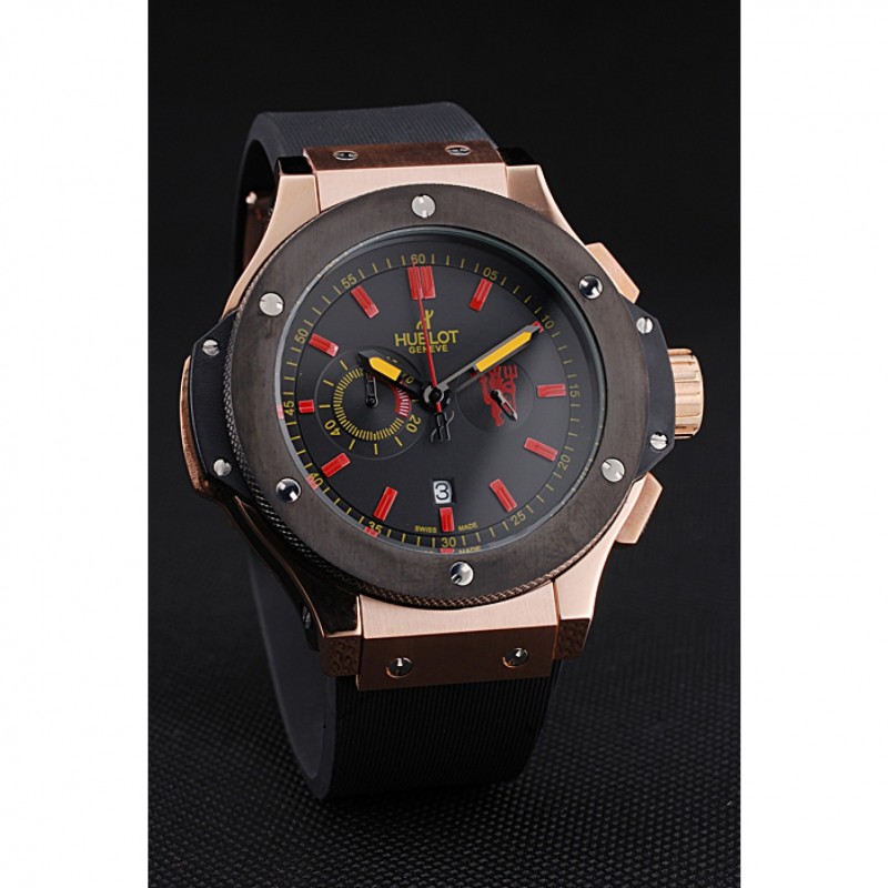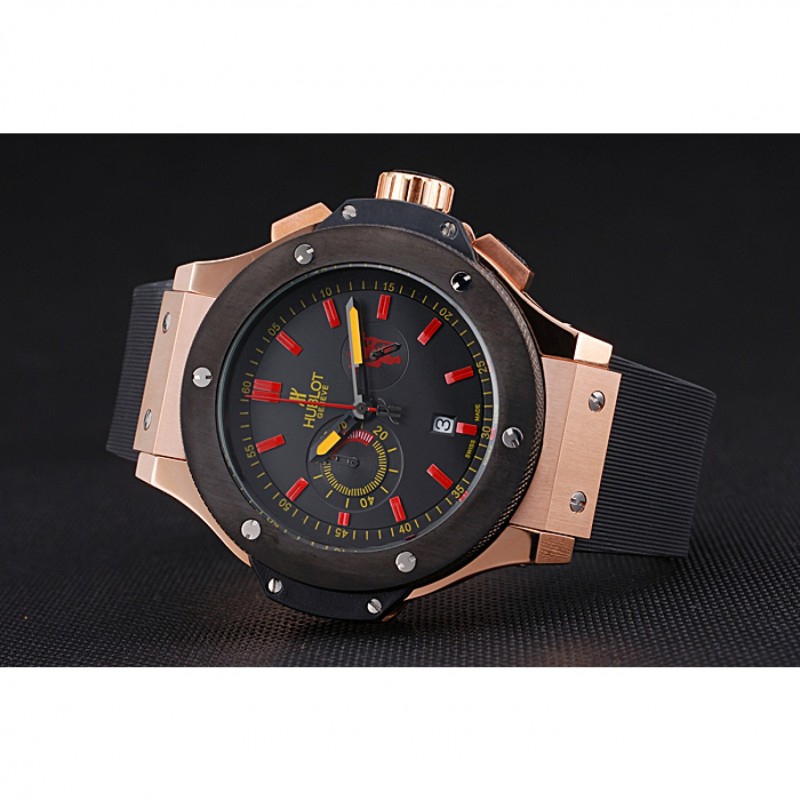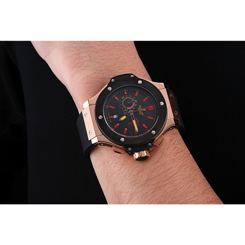 Crown: placcato oro rosa corona intaglio con Hublot perno logo gomma e perno gomma rosa-oro corone a pulsante su entrambi i lati di esso