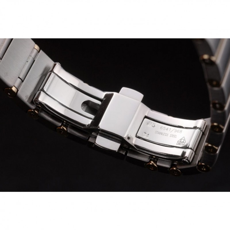 Bracciale: oro giallo 18k placcato ed inossidabile spazzolato bracciale in acciaio con oro giallo placcato Omega rilascio logo spinta chiusura nascosto