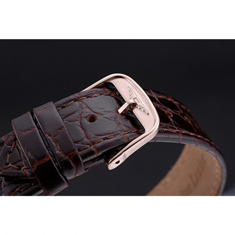 braccialetto: Longines calore cinturino in pelle di coccodrillo marrone con impresso il logo 18k inciso in oro rosa placcato catenaccio del gancio-fibbia